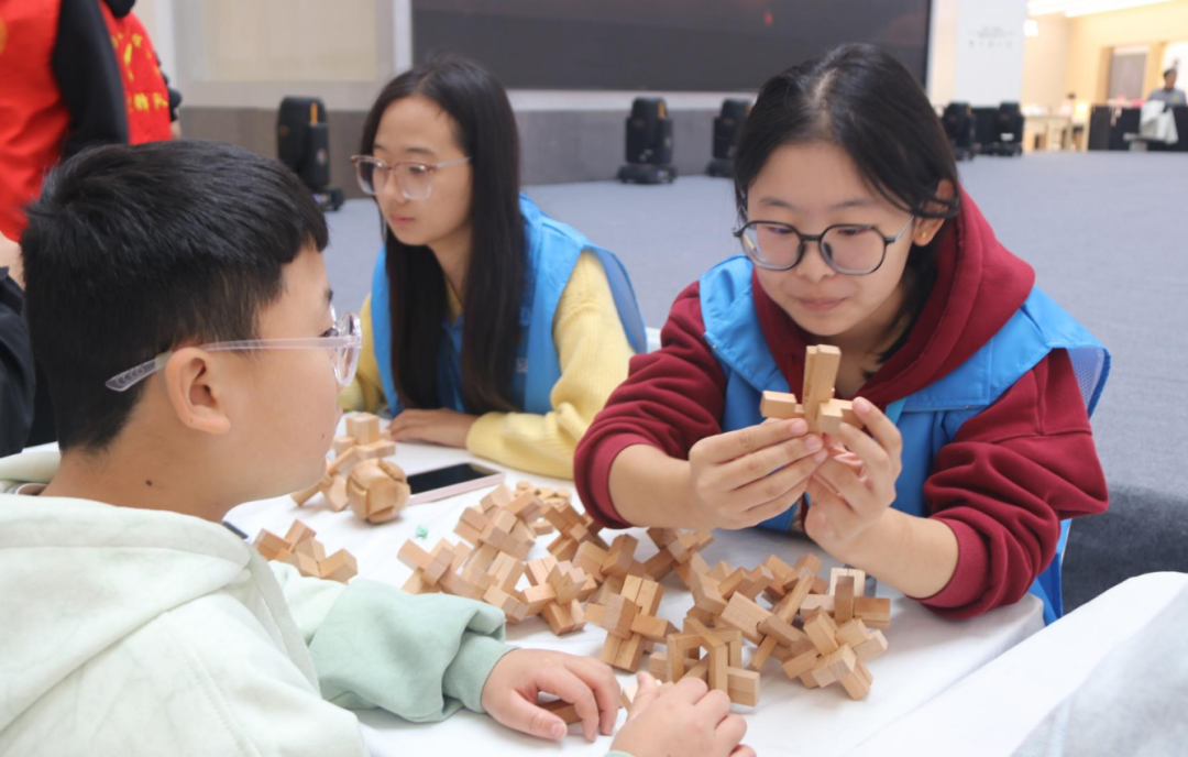 自由体验区成为活动现场最具人气的区域。“巧手筑梦”区内,孩子们通过亲手拼搭“华龙一号”核电站模型和传统鲁班锁,在动手实践中感悟精益求精的工匠精神;“清风铃动”区邀请市民在风铃上书写梦想寄语,将个人理想融入国家发展征程;一旁的“精神阅读角”则为居民提供了静谧的阅读空间,让大家在书香中汲取奋进力量。