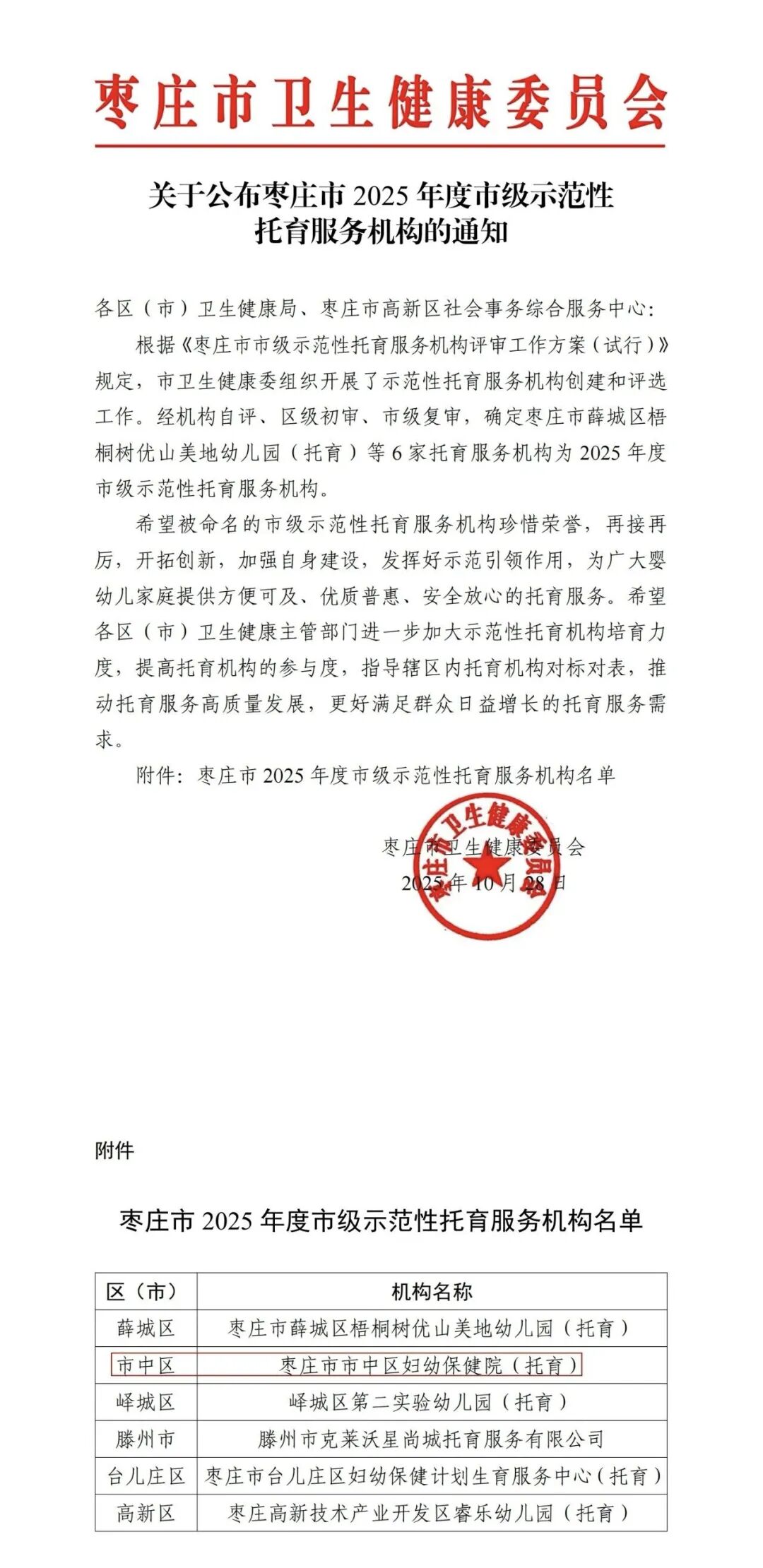 近日,枣庄市卫生健康委员会公布了《2025年市级示范性托育服务机构名单》,市中区妇幼保健院托育中心被评为“2025年枣庄市示范性托育服务机构”,这一荣誉不仅是对市中区妇幼保健院托育中心坚持“科学养育、温柔护航”理念的高度肯定,更是对他们专业团队、安全环境、规范运营、优质服务的全面认可。