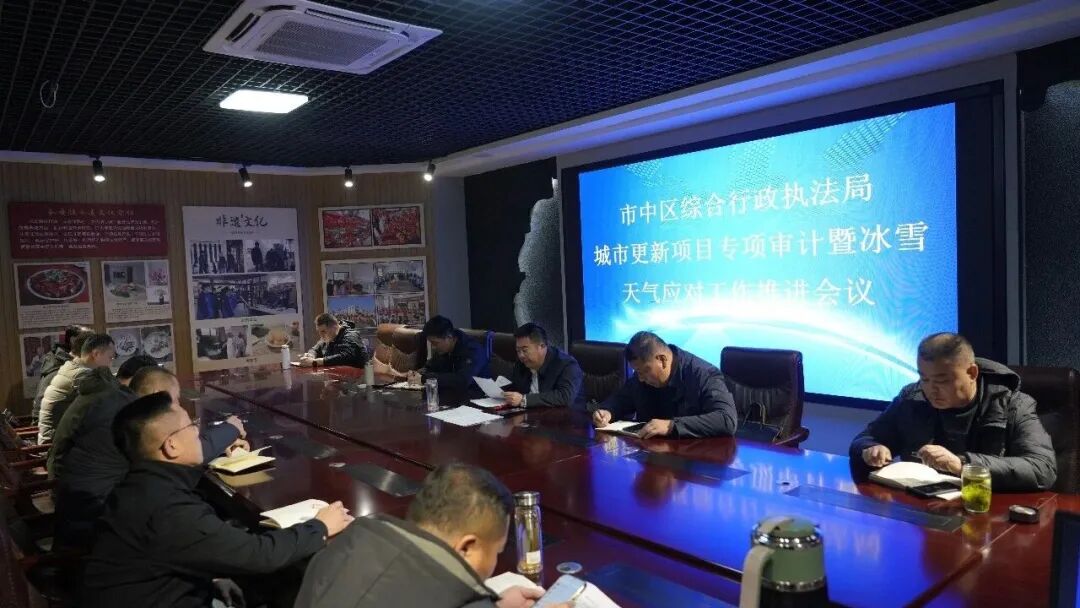 12月10日,区综合行政执法局召开城市更新项目专项审计暨冰雪天气应对工作推进会议,会议由局党组书记、局长王涛主持,区市政园林服务中心负责人,相关科级干部,片区负责人,股室、中队负责人参加。
