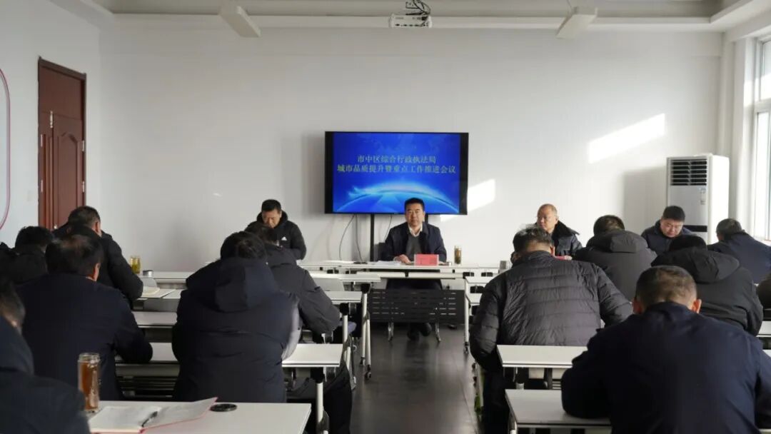 1月8日,区综合行政执法局召开城市品质提升暨重点工作推进会议,会议由局党组书记、局长王涛主持,局科级干部、片区负责人,相关股室、中队负责人参加。