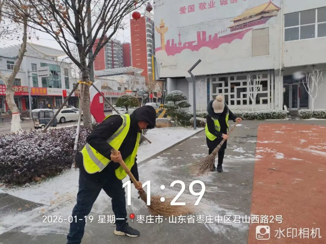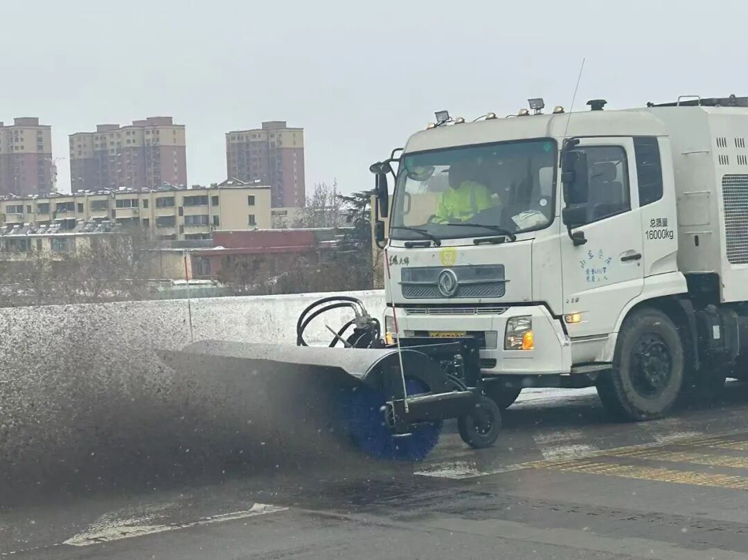 18日夜间至19日,我区迎来降雪天气,市中区城市管理系统闻雪而动、以雪为令,迅速启动应急预案,全员投入清雪保畅一线。区环卫中心出动大型滚雪刷、除雪铲、融雪剂撒布车等机械化作业车辆,重点对城区主次干道、立交桥、桥梁坡面、陡坡路口等易积雪结冰点位开展高效清雪作业。城管执法队员、市政及园林应急队伍同步上路巡查,协助抛洒融雪剂,清理树枝积雪,及时处置突发情况。全体人员顶风冒雪、连续奋战,实行“人歇机不停”24小时轮动作业模式,全力保障道路通行顺畅。