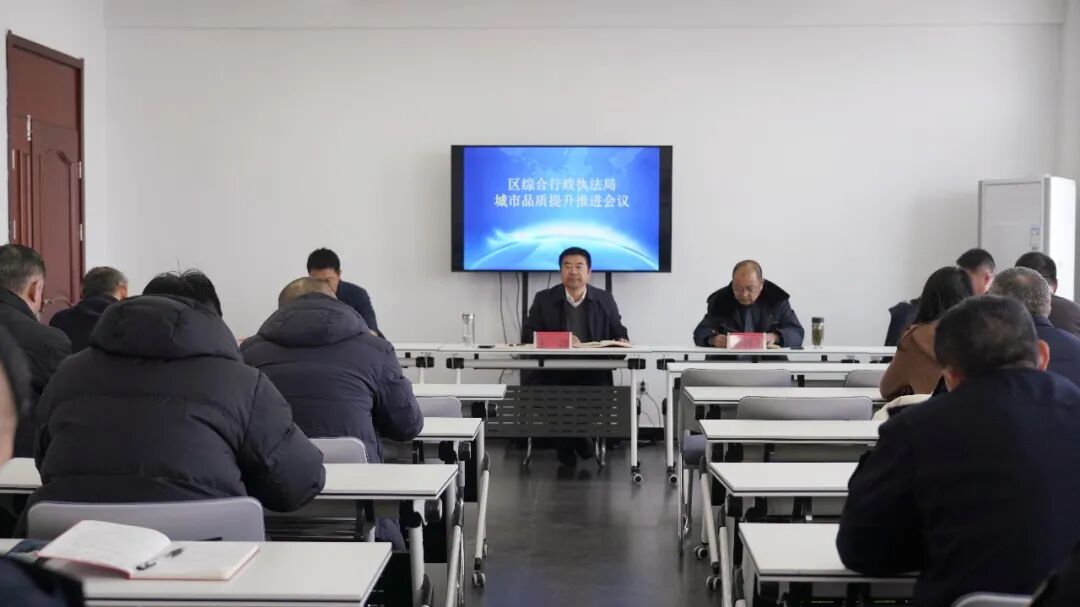 1月27日,区综合行政执法局召开城市品质提升推进会议,会议由局党组书记、局长王涛主持,局科级干部、片区负责人,相关股室、中队负责人参加。