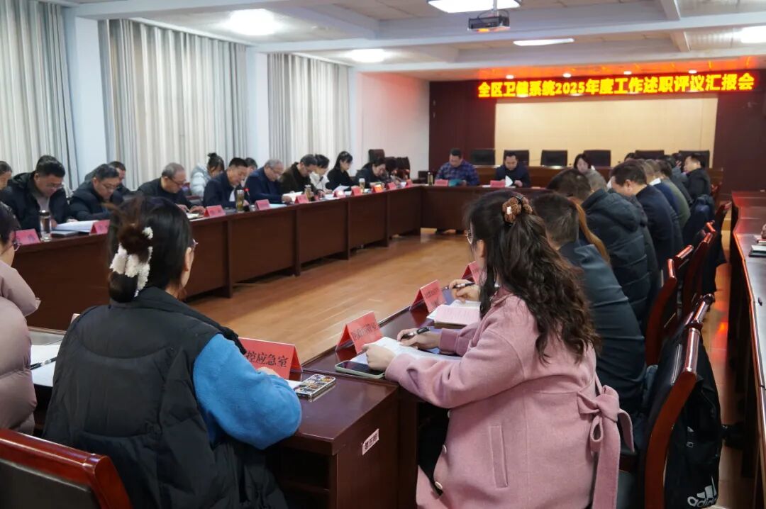 为全面总结回顾2025年工作,科学谋划部署2026年重点任务,进一步凝聚共识、激发干劲,2月4日,全区卫生健康系统2025年度工作述职评议汇报会召开。区卫健局党组书记、局长彭向前主持会议。局全体科级干部;区人民医院、区妇幼保健院及11家基层医疗机构主要负责同志,局各科室负责同志参加会议。