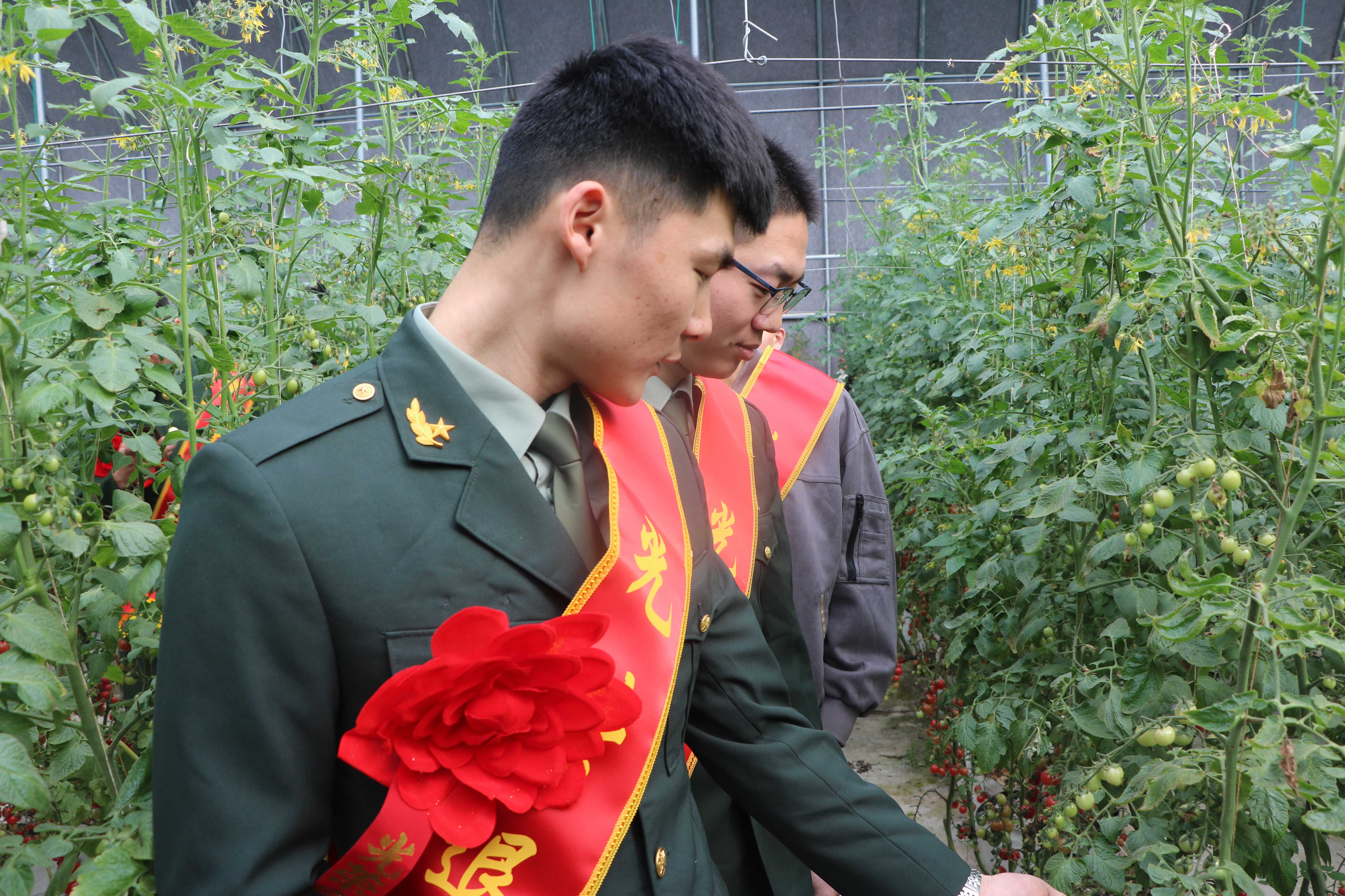 欢迎仪式上,市中区退役军人事务局工作人员为返乡退役军人佩戴绶带和鲜花,并用镜头记录下这一荣耀时刻。