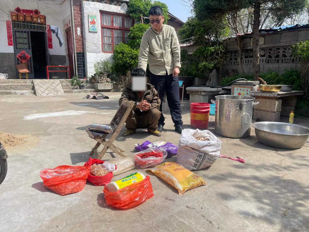 4月4日,抓捕时机成熟,民警们果断出击,在嫌疑人刘某某家中将其成功抓获,当场起获被盗的兔子、鸡鸭、电动三轮车、渔具、面条、大米等全部赃物,人赃并获,无一遗漏。