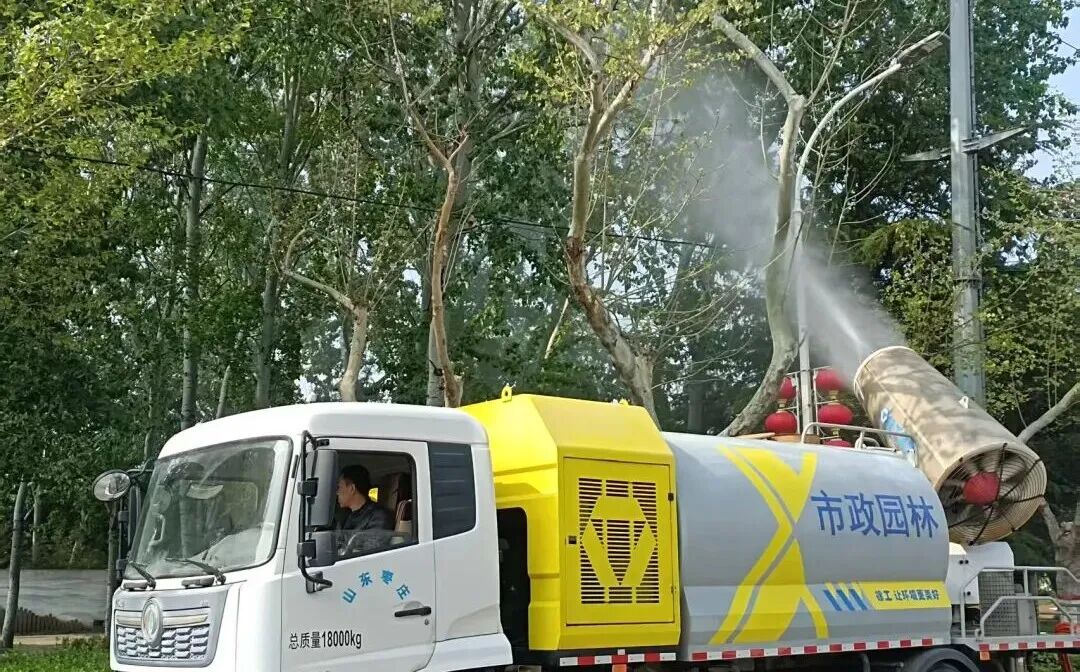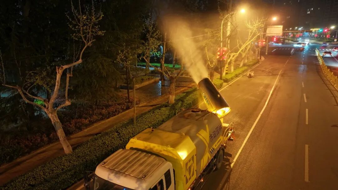 在飞絮高发时段,区市政园林服务中心启动“人机协同”作业模式,利用高压雾炮车、高射程喷雾设备对杨柳树集中区域进行循环喷淋。水雾可增加空气湿度,促使飞絮凝结沉降,同时冲洗树冠残留飞絮,形成“空中拦截+地面清理”的立体防控体系。