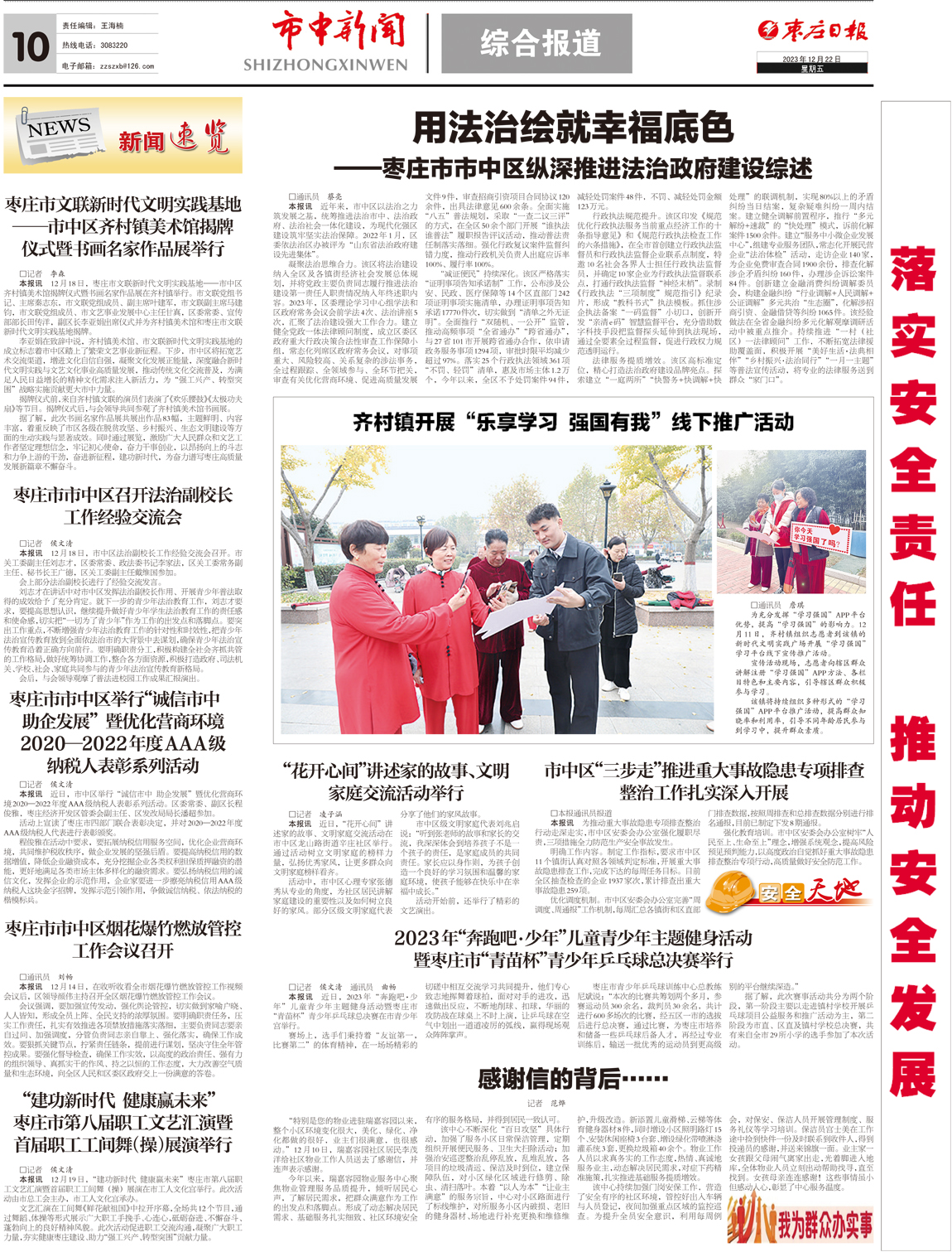 枣庄日报市中新闻第1693期(2023年12月22日)