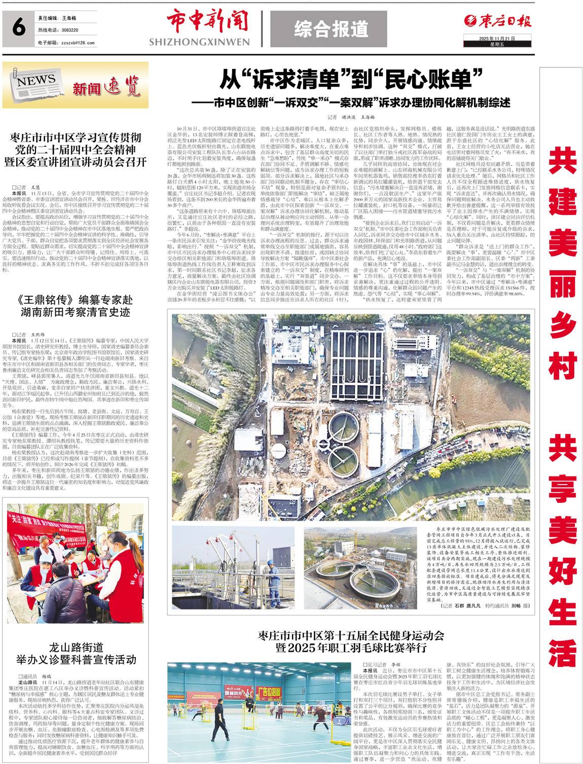 枣庄日报市中新闻第1790期(2025年11月21日)
