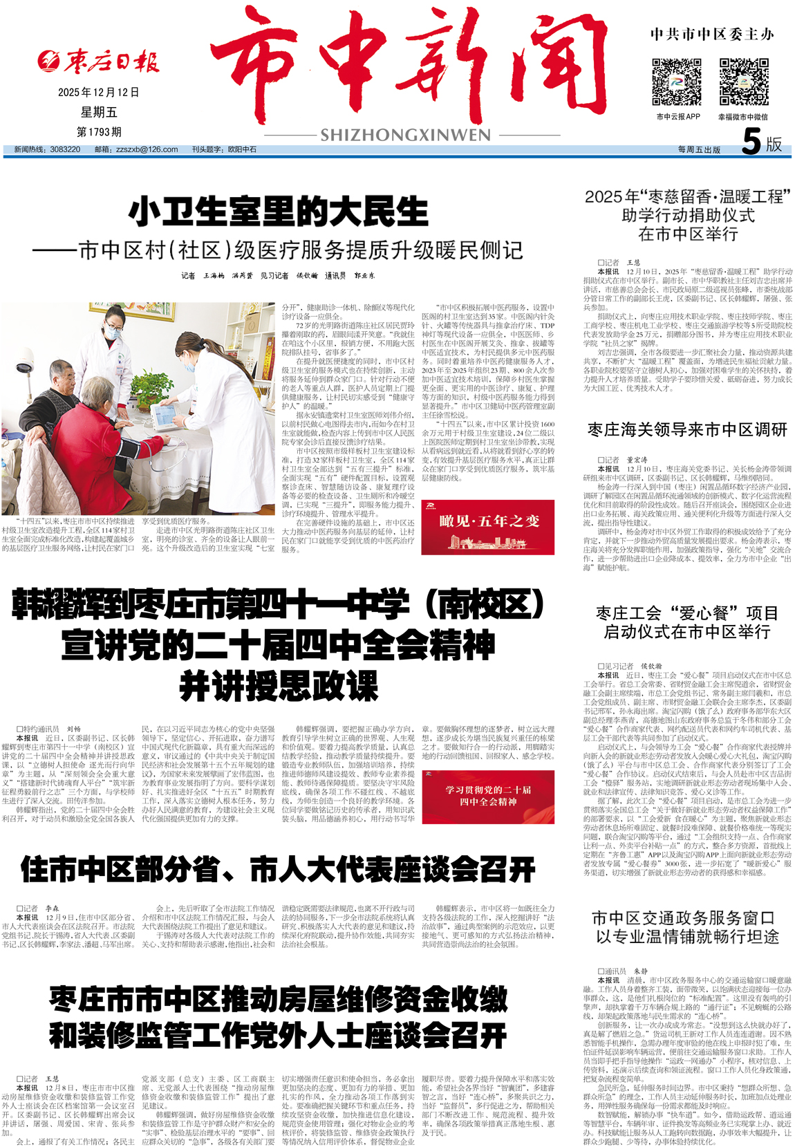 枣庄日报市中新闻第1793期(2025年12月12日)