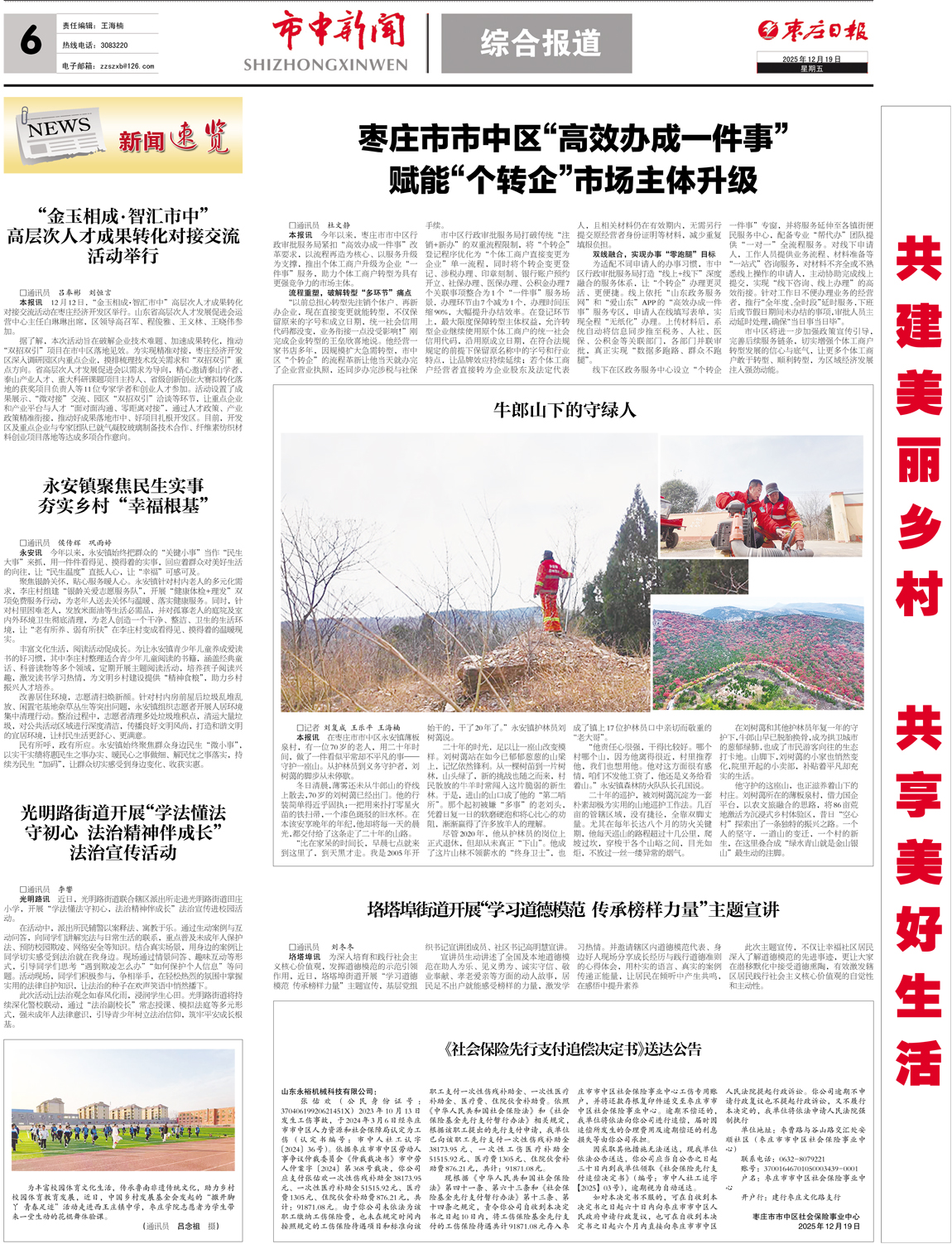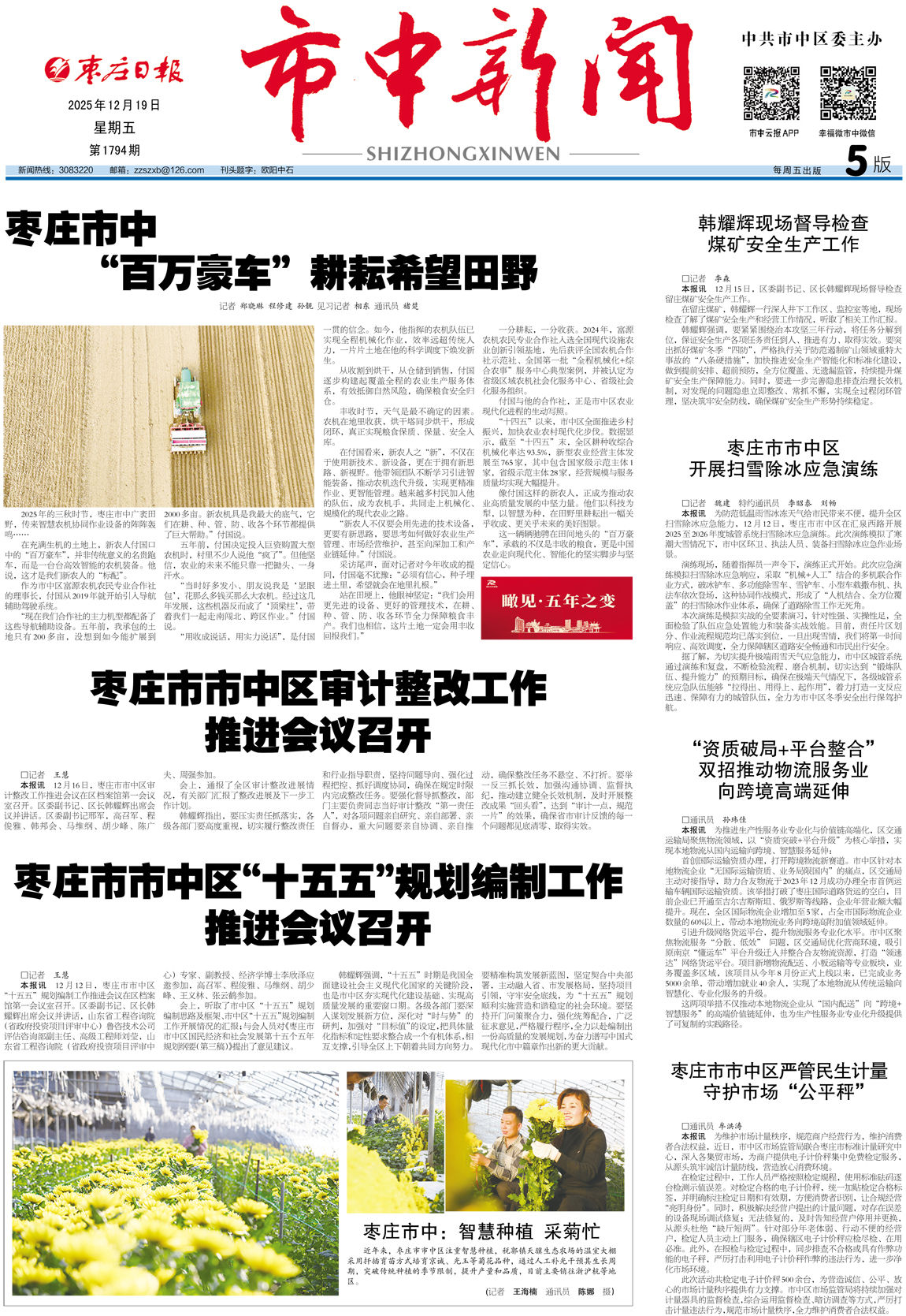 枣庄日报市中新闻第1794期(2025年12月19日)