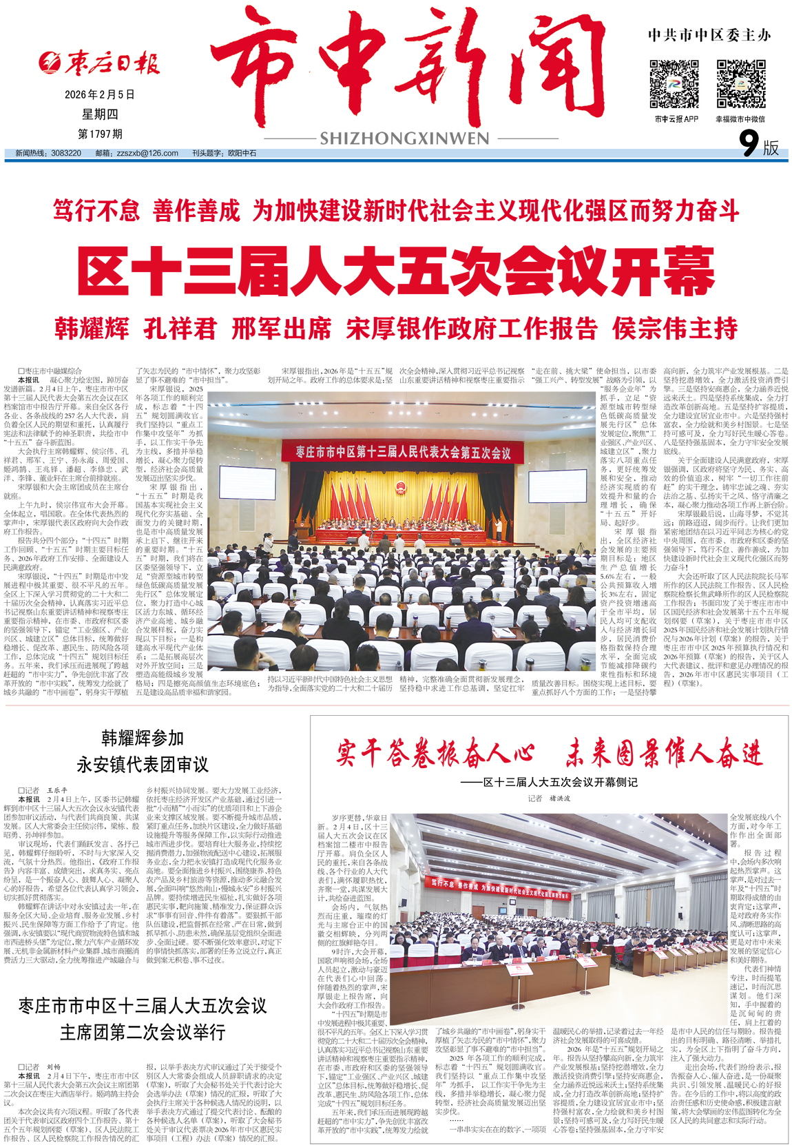 枣庄日报市中新闻第1797期(2026年2月5日)