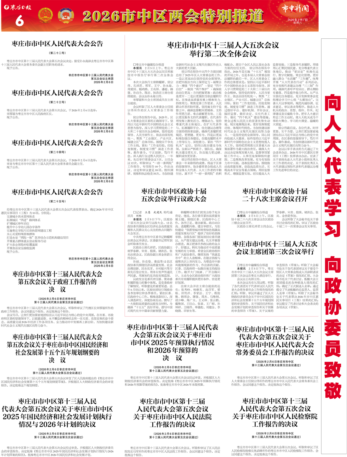 枣庄日报市中新闻第1798期(2026年2月7日)