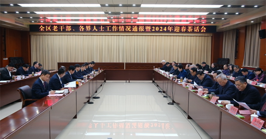 1月30日,全区老干部、各界人士工作情况通报暨2024年迎春茶话会在区档案馆第二会议室举行。区委书记宋磊主持会议并讲话,区委副书记、区长韩耀辉通报了去年工作开展情况和今年工作打算。区人大常委会主任侯宗伟、区政协主席孔祥君、区委副书记邢军,靳勇、王宁、马维纲等领导出席。离退休区级老领导,各界人士、劳动模范、知识分子代表参加会议。