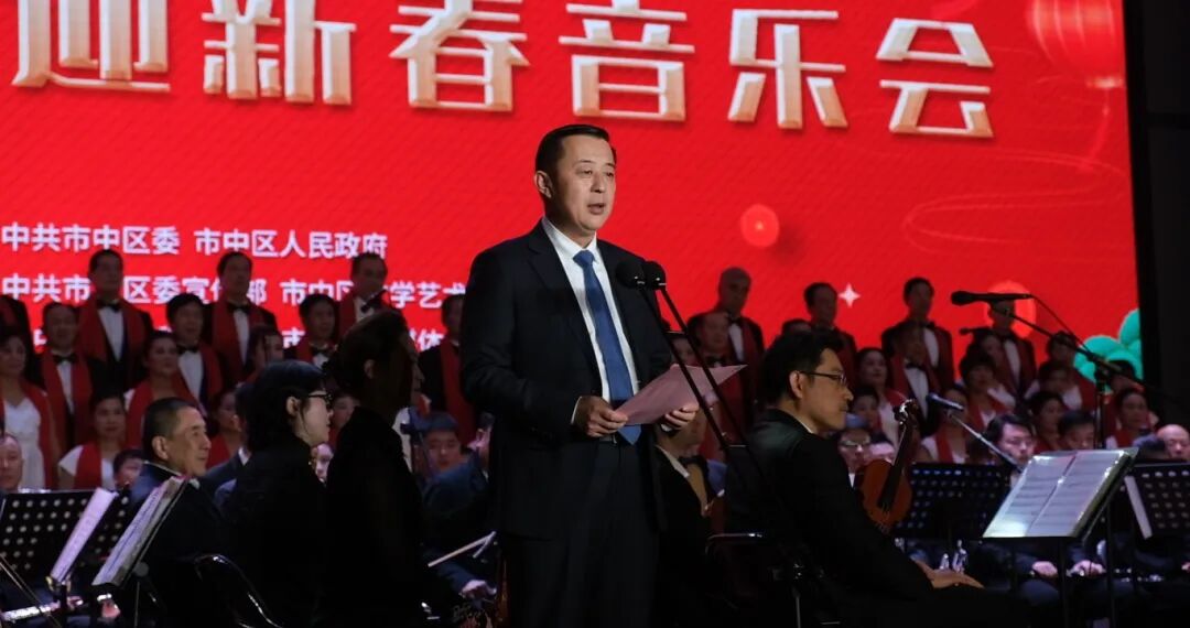 韩耀辉在致辞中说,2023年,是市中区发展历程中极不平凡的一年,承载着61万市中人的奋斗足迹。这一年,我们坚持以习近平新时代中国特色社会主义思想为指导,统筹抓好稳增长、调结构、惠民生各项工作,高质量发展扎实推进。我们全力以赴拼经济抓发展,常态化开展招商引资百日会战,加力提速攻坚重点项目,工业经济“满弓劲发”。我们牢记民生之需,努力创造高品质生活,城市建设日新月异,就业、教育、医疗、社保、文化等各项事业全面进步,支撑起老百姓“稳稳的幸福”。2024年,让我们更加紧密地团结在以习近平同志为核心的党中央周围,在市委、市政府和区委的坚强领导下,以“重点项目落地见效年”为抓手,以工作跨越赶超为主线,聚焦“工业强区、产业兴区、城建立区”总体目标,坚决打好打赢“十大跨越赶超攻坚战”,为加快建设工业强、产业兴、城乡美、群众富、发展质量高的现代化强区而努力奋斗。