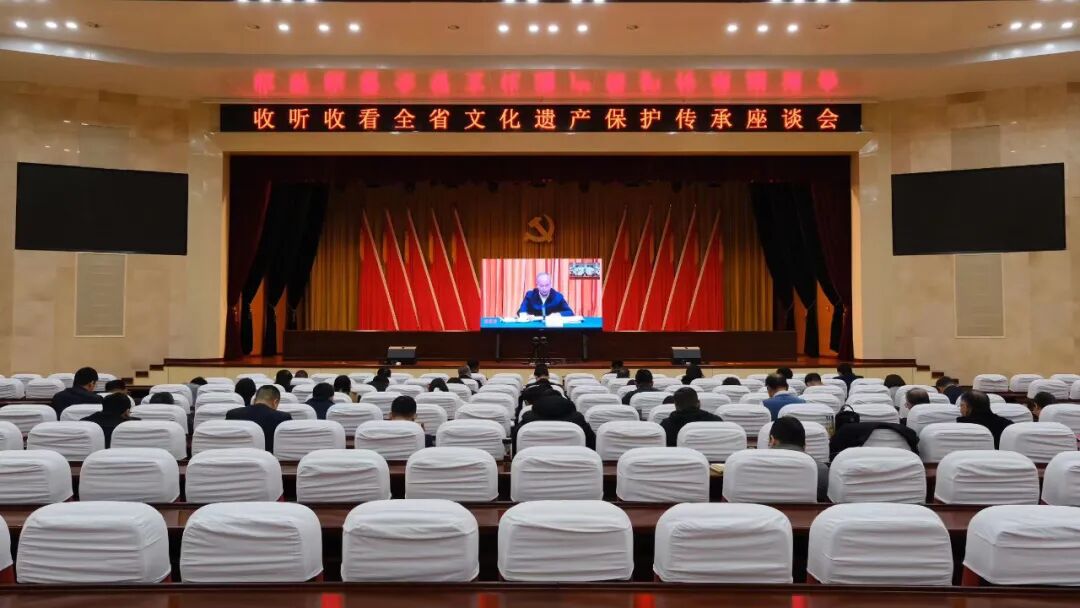 3月21日,全省文化遗产保护传承座谈会召开。区委书记宋磊,田传洋、马维纲在市中分会场收听收看了会议实况。