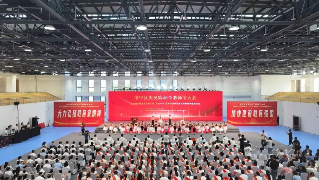 9月8日,全区庆祝第四十个教师节大会、教育发展基金会第三届“学在市中” 品牌建设推进暨优秀教师事迹报告会在枣庄应职中等职业学校体育馆召开。区委书记宋磊出席并讲话,区委副书记、区长韩耀辉主持,区人大常委会主任侯宗伟,区委副书记邢军,梁栋、田传洋、胡少峰、高潮等领导,区关工委常务副主任、秘书长、区教育发展基金会负责人王广德,北京凡华教育科技集团有限公司董事长石戴卫参加。