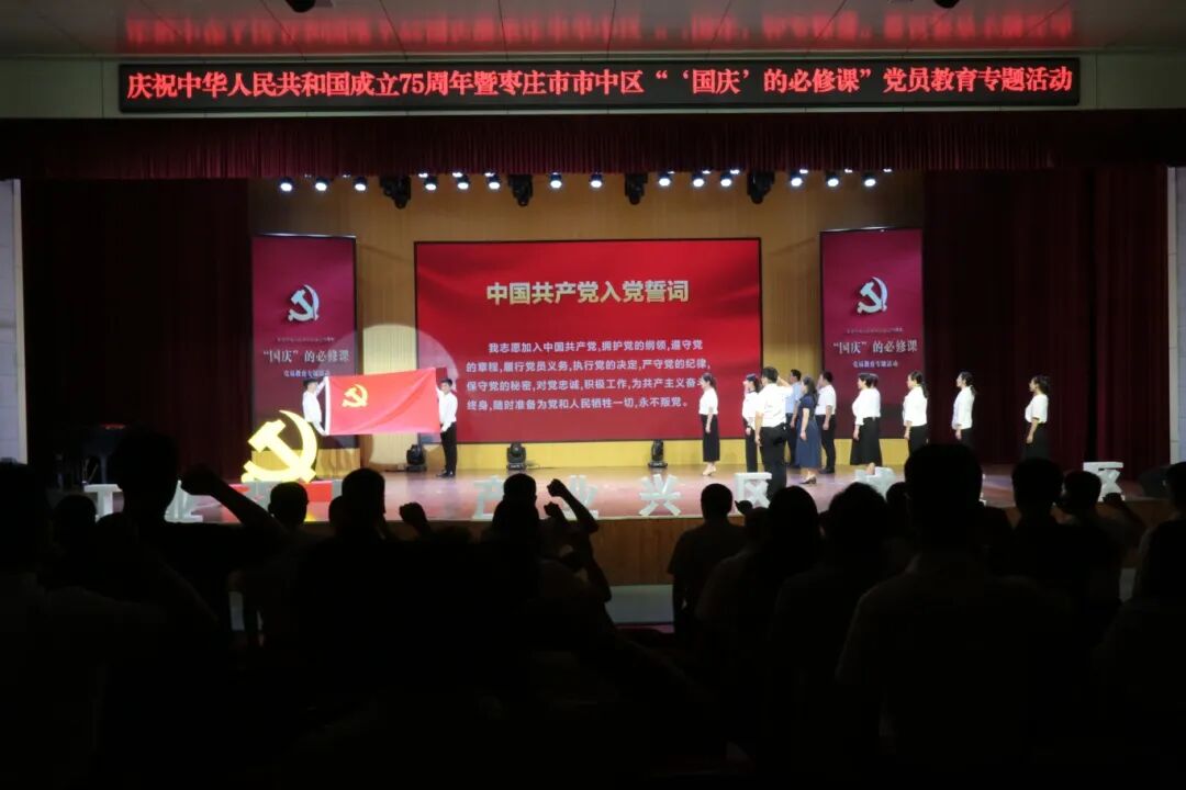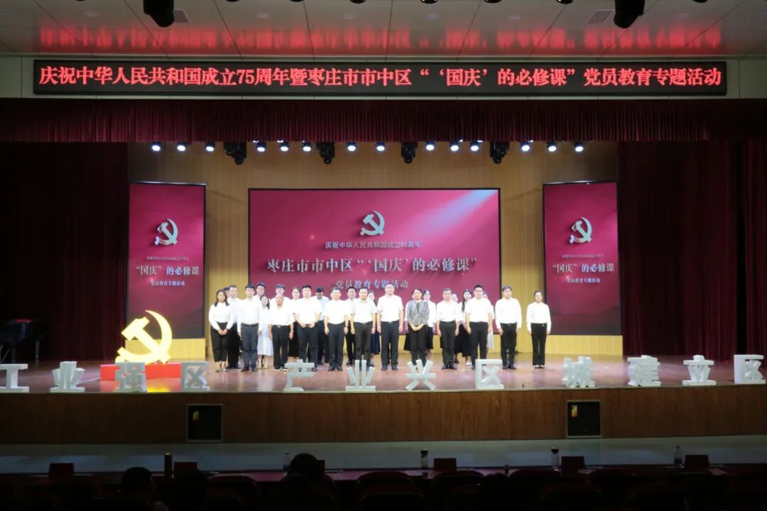 为庆祝中华人民共和国成立75周年,认真学习贯彻党的二十届三中全会精神,营造“迎国庆”的良好氛围。9月29日,枣庄市市中区举办庆祝中华人民共和国成立75周年暨“‘国庆’的必修课”党员教育专题活动。通过沉浸式情景党课形式,进一步激励全区广大党员勇担使命、昂扬向上。