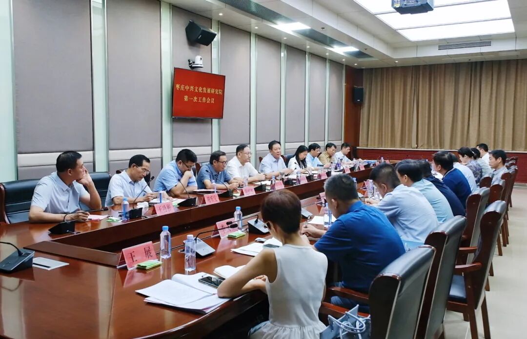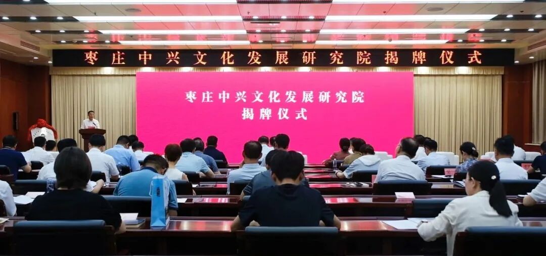 7月2日,枣庄中兴文化发展研究院揭牌仪式在市中区档案馆第二会议室举行。市委常委、宣传部部长、统战部部长陈永生,副市长刘吉忠,市文联党组书记、主席李景龙,市社科联党组书记、主席胡安源,市文化和旅游局党组书记、局长赵爱云,市委宣传部副部长、市新闻出版局局长夏敏高;枣庄学院党委书记高峰,枣庄学院党委副书记、校长丛海林,枣庄学院原党委书记、教授胡小林,枣庄学院党委委员、副校长、社会科学处处长褚夫敏,枣庄学院党委委员、宣传部部长、研究生处处长闫昕;山东能源枣矿集团党委书记、董事长李文,山东能源枣矿集团党委副书记、工会主席周东云;区委副书记、区长韩耀辉,田传洋等领导、学者参加。