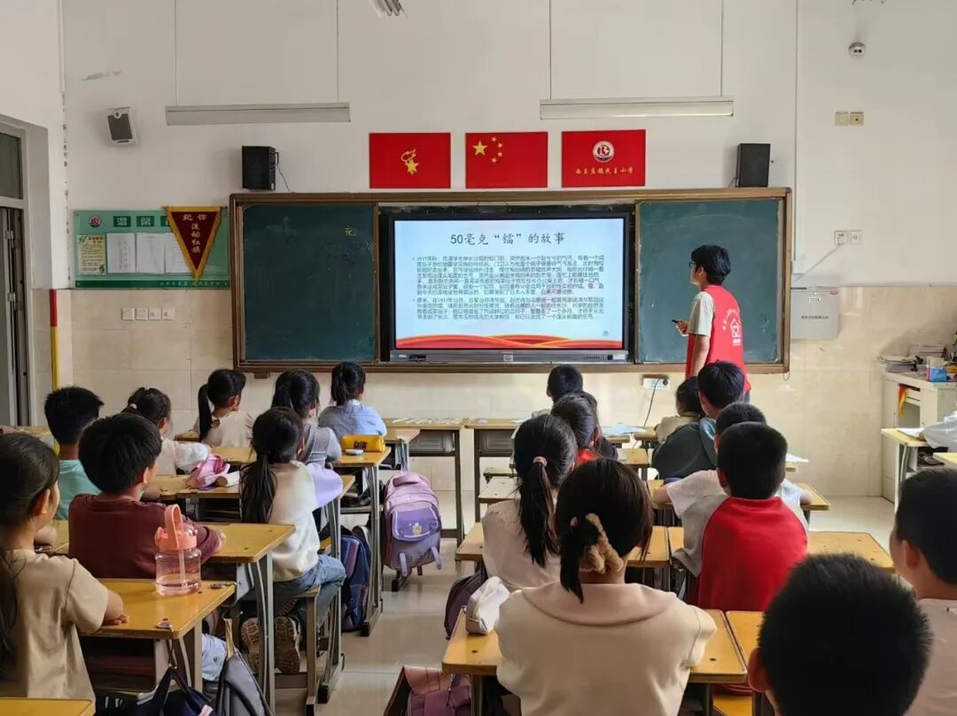 活动现场,志愿者们和小朋友们热情高涨,第一部分志愿者给小朋友播放爱国主义短片和讲解50毫克“镭”的故事,采用提问的方式让小朋友了解“两弹一星”的相关知识和成功意义,通过讲述爱国故事,学习爱国精神,激发小朋友们的民族自豪感和责任感。