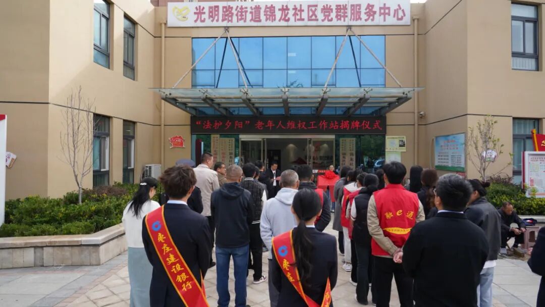 10月19日上午,光明路司法所“法护夕阳”老年人维权工作站揭牌仪式在光明路街道锦龙社区隆重举行。市司法局公共法律服务管理处副处长吴洪平,区司法局党组书记、局长焦艳红,光明路街道办事处主任刘潇枫,光明路街道人大工作室副主任邵燕受邀出席,光明路司法所及社区相关人员参加活动。
