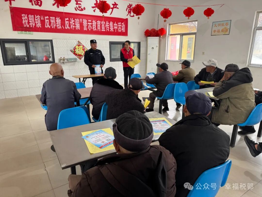为有效防范风险隐患,持续巩固预防电信诈骗、防邪教工作成果,近日,税郭镇组织镇派出所、综治中心、宣传办、敬老院及志愿者等多方力量,走进镇敬老院开展“暖心守护夕阳红”反诈骗反邪教宣传教育活动。