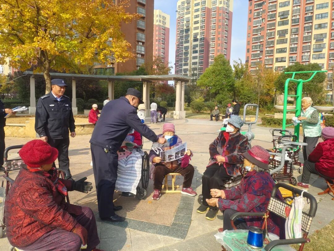 为切实提高老年人的防范诈骗意识和能力,保护老年人的财产安全,11月20日,市中公安分局光明路派出所组织民辅警进社区开展防范养老诈骗宣传活动。