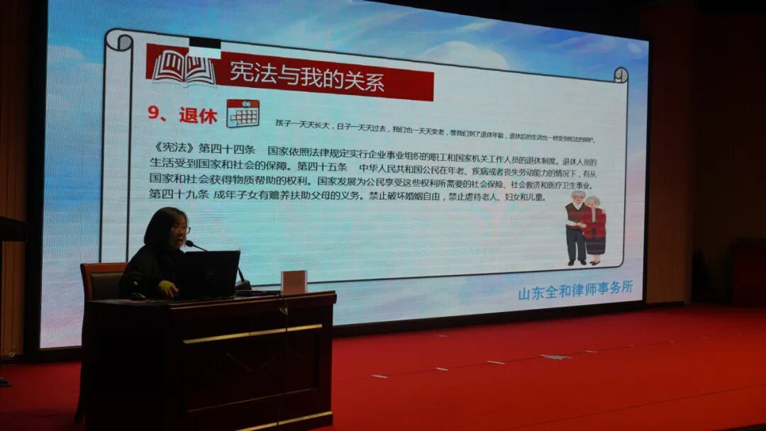 12月3日,光明路街道在江山实验中学开展“宪”入校园 “法”护成长——法治教育宣讲活动。本次活动由光明路街道平安法治办牵头,联合区法学会、区公安分局反诈中心、区特警大队、光明路司法所、垎塔埠派出所、光明路街道教育学区以及山东全和律师事务所等单位共同参与,旨在将宪法精神带入校园,加强青少年法治教育,提升学生们的宪法意识,为青少年的健康成长保驾护航。
