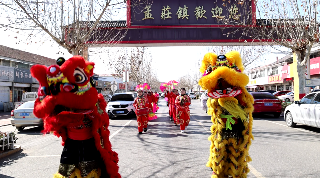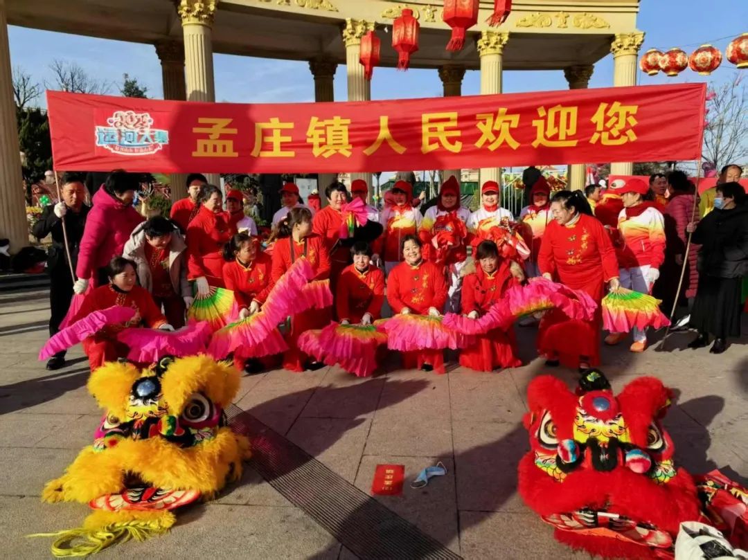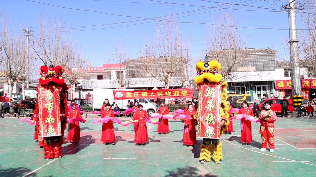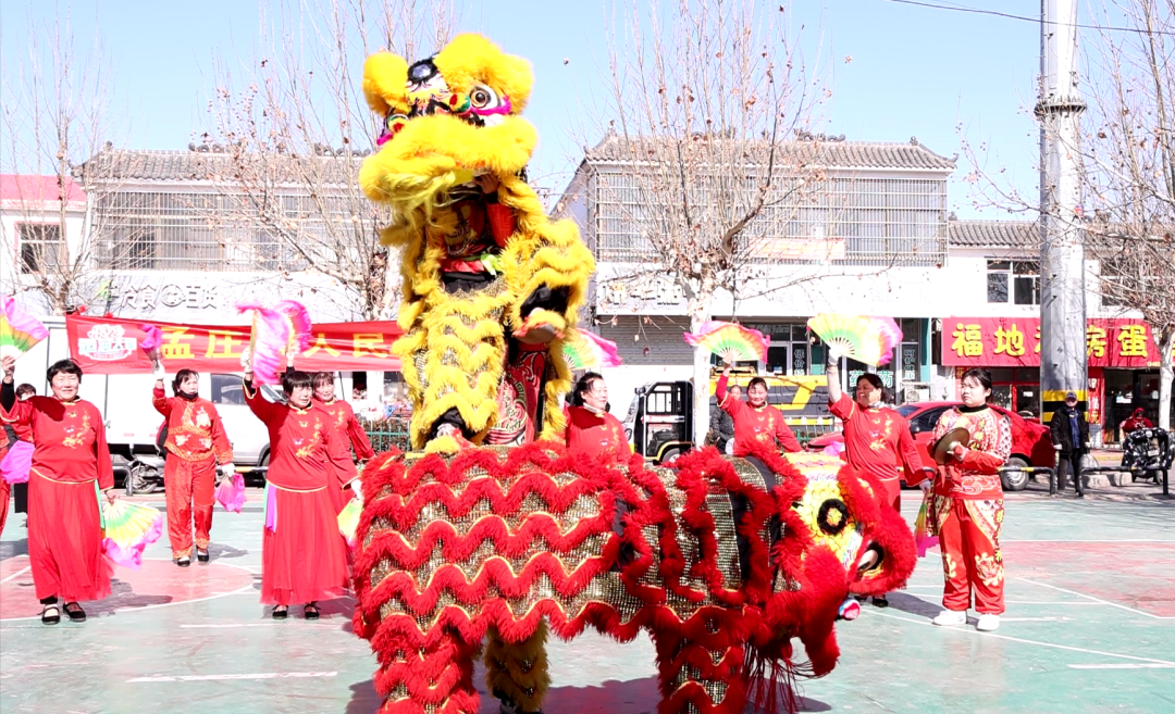 活动现场,锣鼓喧天。舞狮队伍沿着孟庄镇的主干道一路巡游,吸引了众多村民驻足观看。随着激昂的锣鼓声响起,一红一黄的舞狮从广场两侧一跃而出。他们一登场便吸引了所有人的目光。在节奏明快的锣鼓声中, 舞狮队员们默契配合,将醒狮的各种神态展现得淋漓尽致,表演过程中还时不时与观众互动,引得现场观众阵阵欢呼和掌声。一群身穿鲜艳服饰的秧歌队员们也迅速入场。她们手中彩扇上下翻飞,踏着欢快的节奏,迈着欢快的步伐,将喜悦和幸福传递给现场每一个人。扭秧歌与舞狮相互呼应,形成一幅热闹非凡的画面。