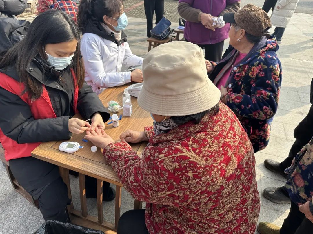 镇卫生院的医务志愿者还为老人测量血压和血糖。他们耐心地为老人绑上血压计,仔细记录数据,热心询问老人的日常用药情况、有无疾病史等一系列问题,面对面解答疑惑,并根据测量结果,向老人提供合理的饮食和作息建议。对于血压异常的老人,还贴心地提醒他们按时就医。