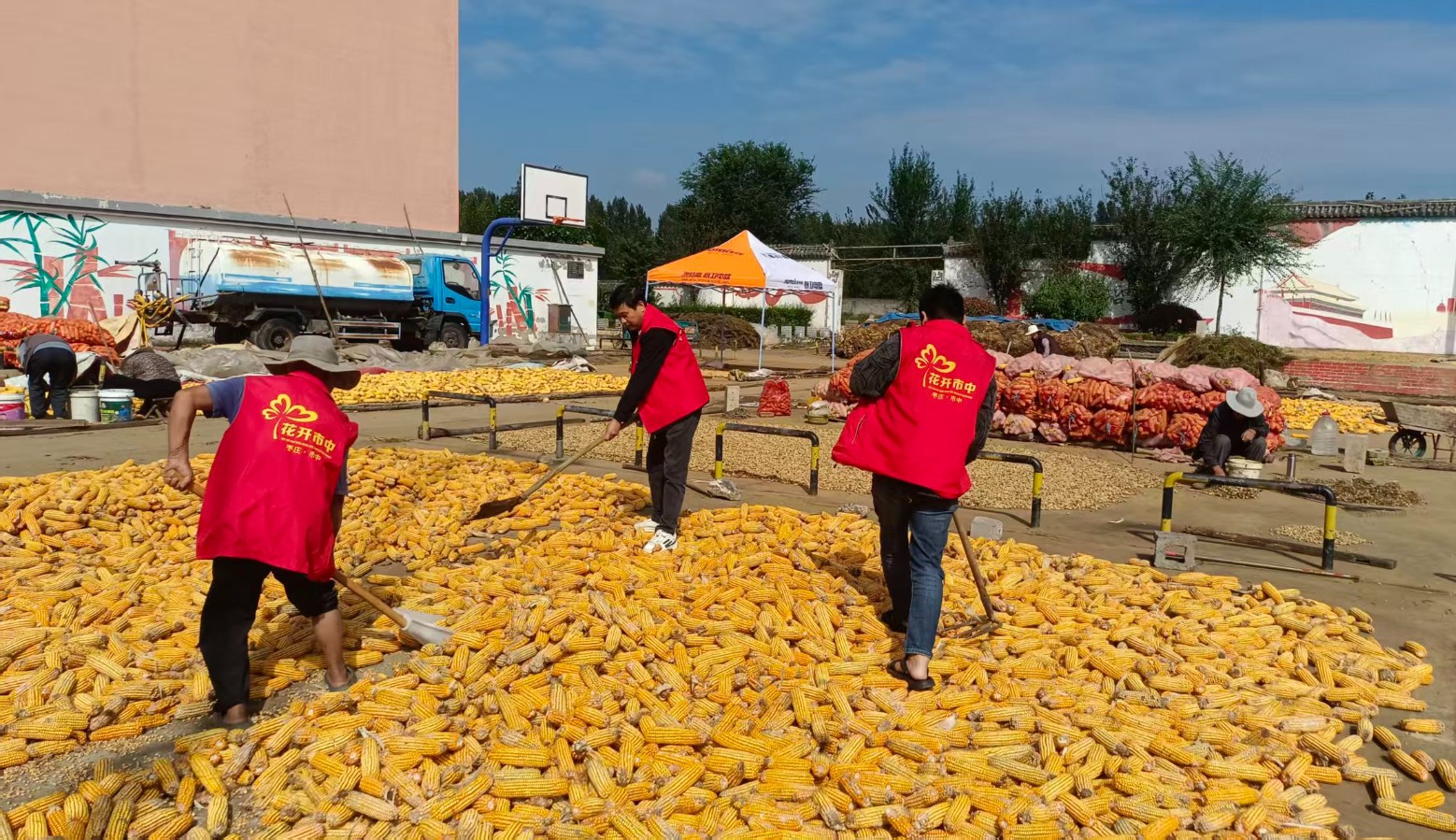 志愿者们协助村民将堆积的玉米和花生搬运至村委会广场等公共场地进行集中摊晒。他们分工明确,有的负责搬运,有的负责摊开晾晒,还有的负责看守,以防鸟类和牲畜破坏。通过合理规划晾晒区域、适时翻动等措施,确保通风透气,最大程度降低霉变发生的可能性。