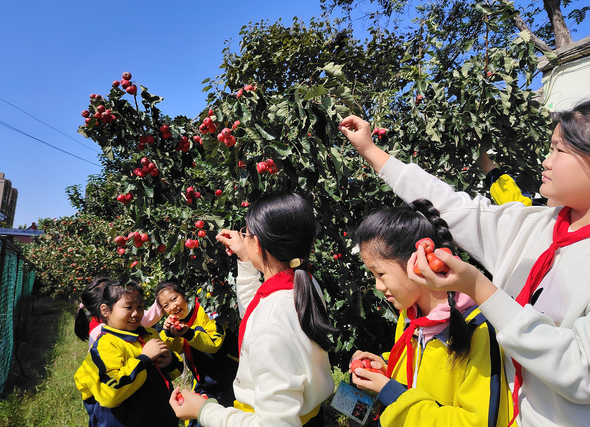 据了解,为让劳动教育真正落地见效、融入日常,学校精心打造了专属的劳动教育实践基地。除了此次成为 “网红课堂” 的山楂行,还包含绿意盎然的葡萄园、果实满枝的小公园柿子林。平日里,浇水、除草、松土等许多养护工作由学生自愿自主完成,大家还会用笔记本记录果实从开花、结果到成熟的每一个变化。