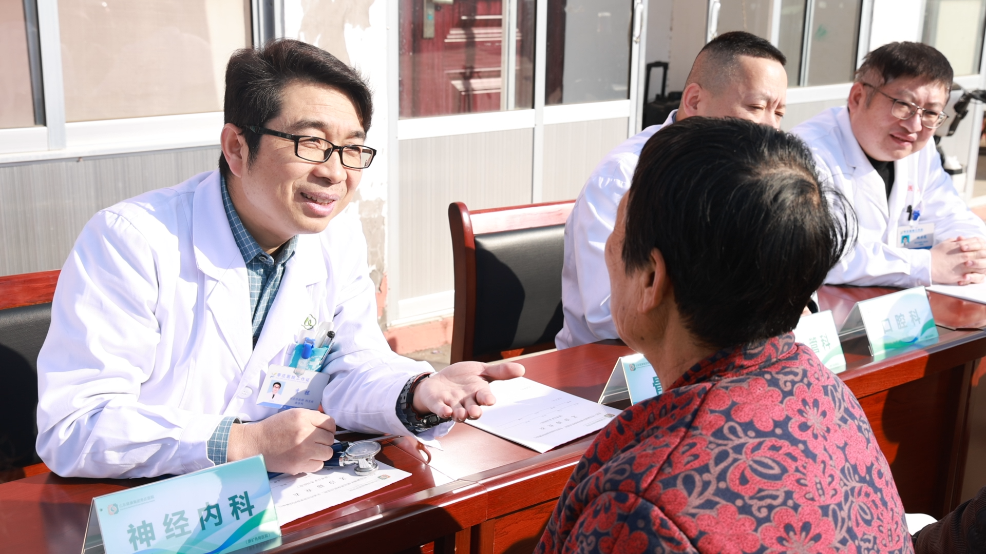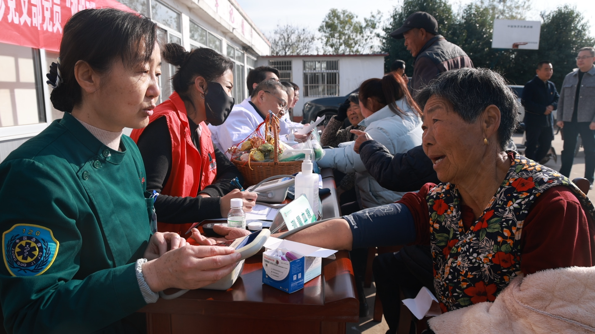 活动现场,多个科室的专家团队早早布置好诊疗台,耐心接待每一位前来咨询的村民。医护人员细致地为大家测量血压、血糖,询问病史、分析病情,针对常见慢性病、老年病等提供个性化诊疗建议。