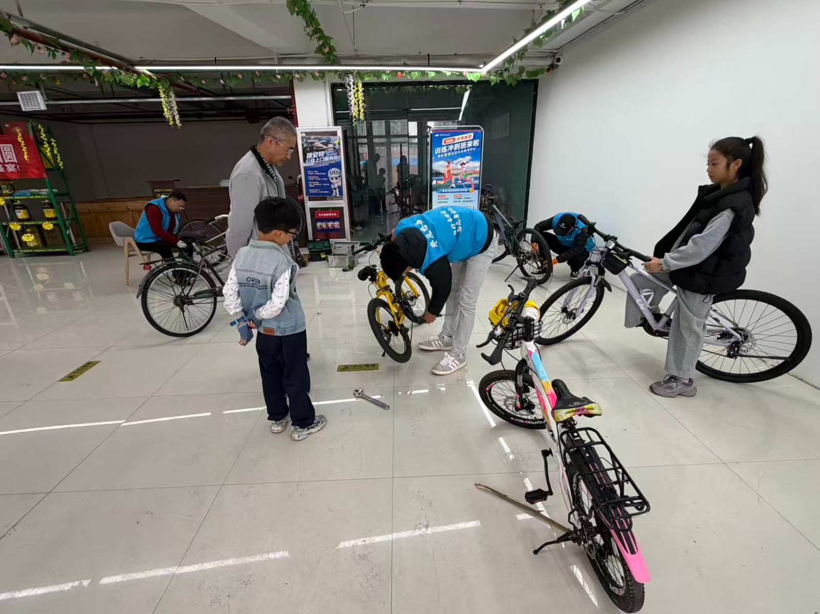 活动当天,捷安特维修师傅们提前筹备好了内胎、刹车皮、润滑油、螺丝等常用维修配件,对于前来求助的居民,师傅们不仅耐心排查故障,还细致讲解日常保养技巧,“车胎要注意避开尖锐物,平时可以每周检查一次气压”“刹车线要定期紧一紧,避免使用时突然失灵”。现场还设置了临时等候区,社区志愿者为等候的居民送上热水,并发放文明出行宣传手册,让等待的过程也充满暖意。