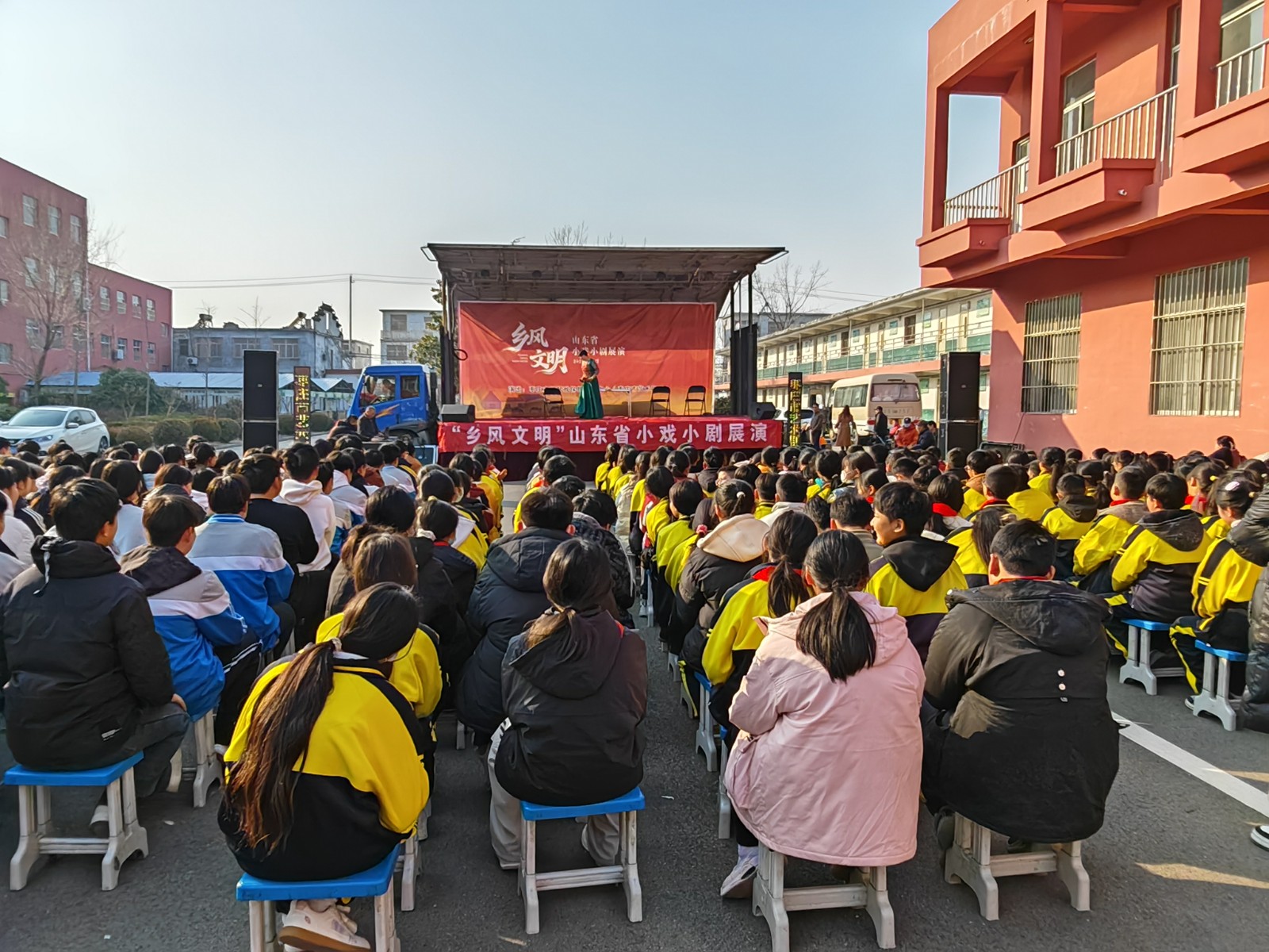 下午2时,税郭镇安城九年一贯制学校的活动现场座无虚席。随着悠扬的柳琴曲调响起,现代小型柳琴戏《弄拙成巧》率先登场,诙谐幽默的剧情、生动鲜活的表演瞬间点燃现场气氛,台下师生不时报以热烈掌声。随后《新编墙头记》等精彩剧目接连上演,剧目聚焦家庭和睦、尊老爱幼、诚信友善等乡风文明核心主题,以师生喜闻乐见的艺术形式传递正能量。歌曲《担当》旋律激昂、歌词励志,唱出了新时代奋斗者的责任与情怀,引发师生强烈共鸣。
