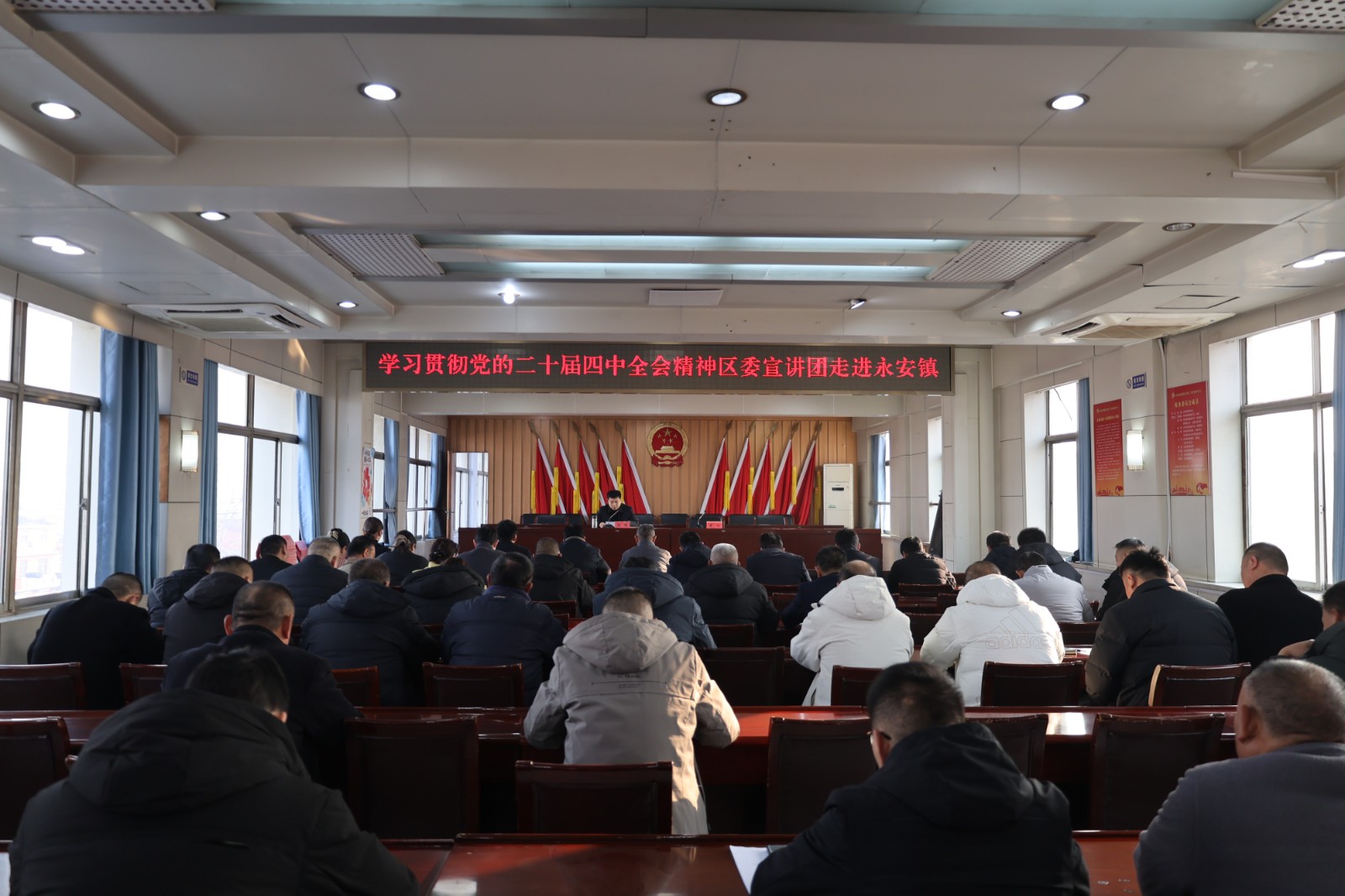 为全面深入学习贯彻党的二十届四中全会精神,引导广大党员干部群众把思想和行动统一到党中央决策部署上来,推动全会精神在基层落地生根、走深走实,近日,永安镇举行学习贯彻党的二十届四中全会精神宣讲,区委宣讲团成员、区统计局党组书记、局长杨维作宣讲报告会。镇全体科级干部、村(社区)党组织书记、自然村负责人以及部门负责人参加会议。