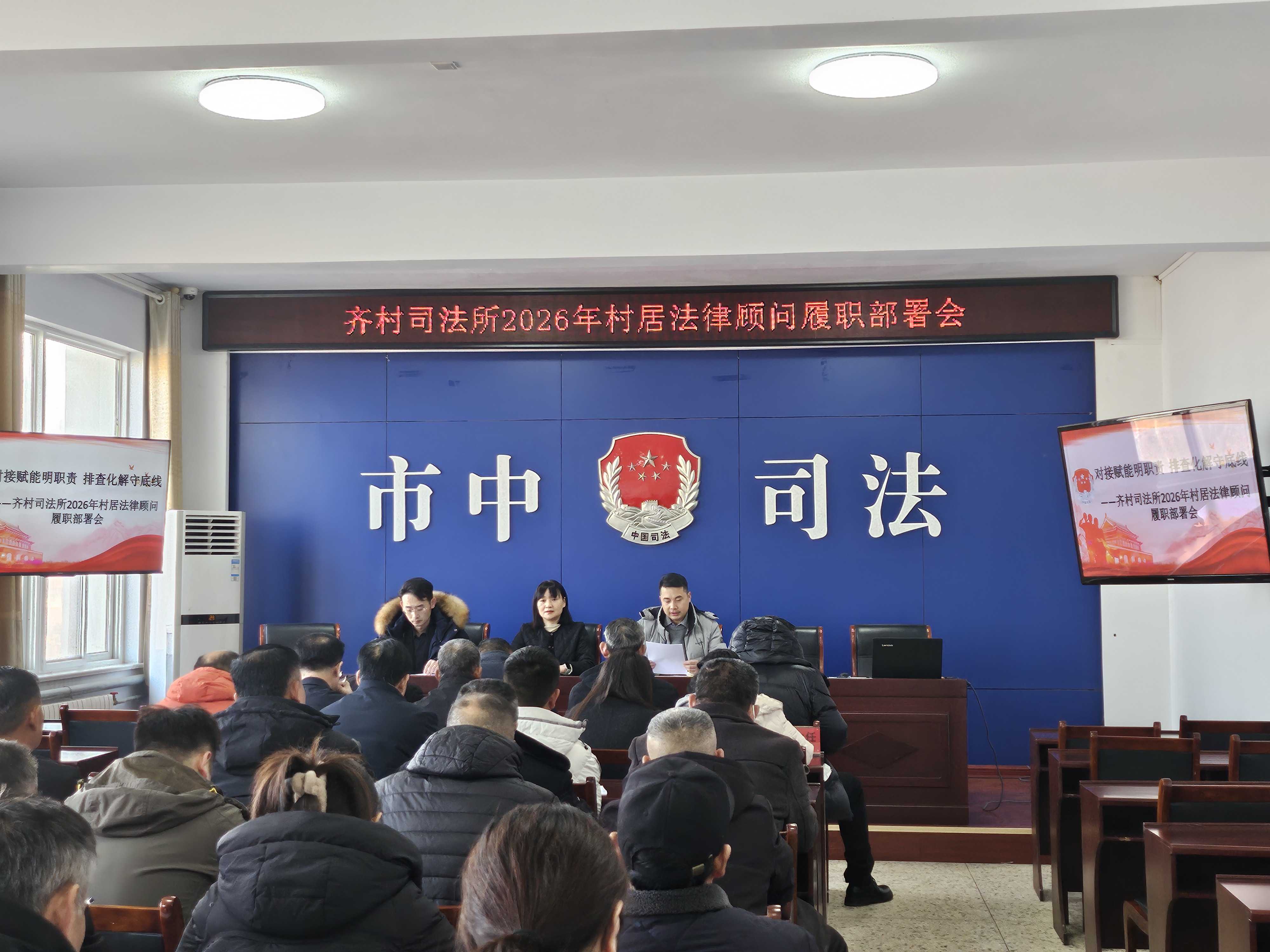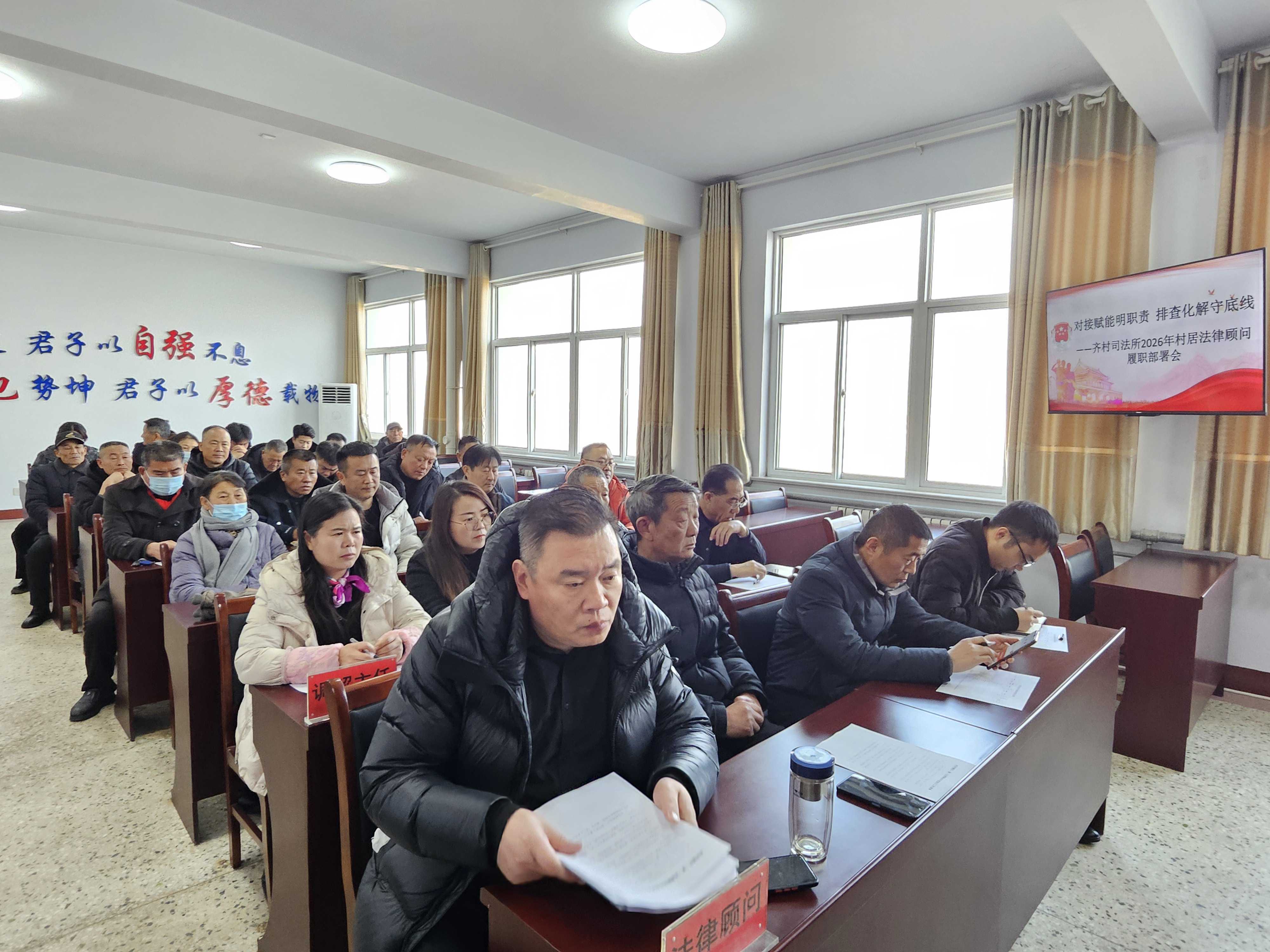 1月16日,齐村司法所召开2026年村(居)法律顾问工作部署会,辖区全体村(居)法律顾问、村(居)调解主任及司法所工作人员参会。