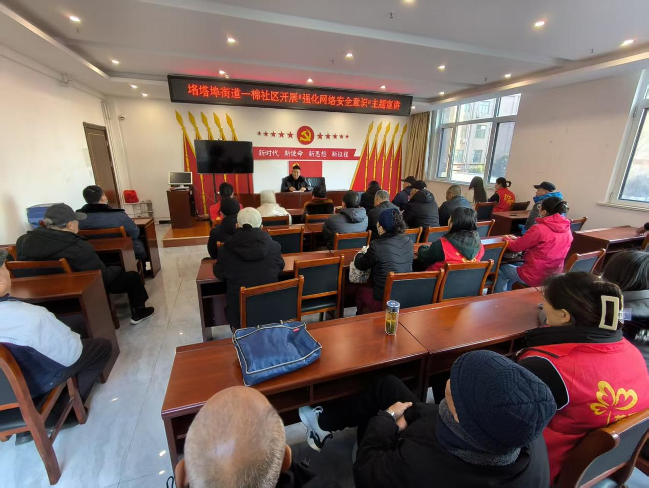 为进一步提升辖区居民网络安全意识和自我防护能力,筑牢社区网络安全防线,近日,垎塔埠街道一棉社区在会议室开展“强化网络安全意识”主题宣讲活动,基层党组织书记宣讲团成员、社区书记赵彦成宣讲,本次宣讲活动受众人数为28人。