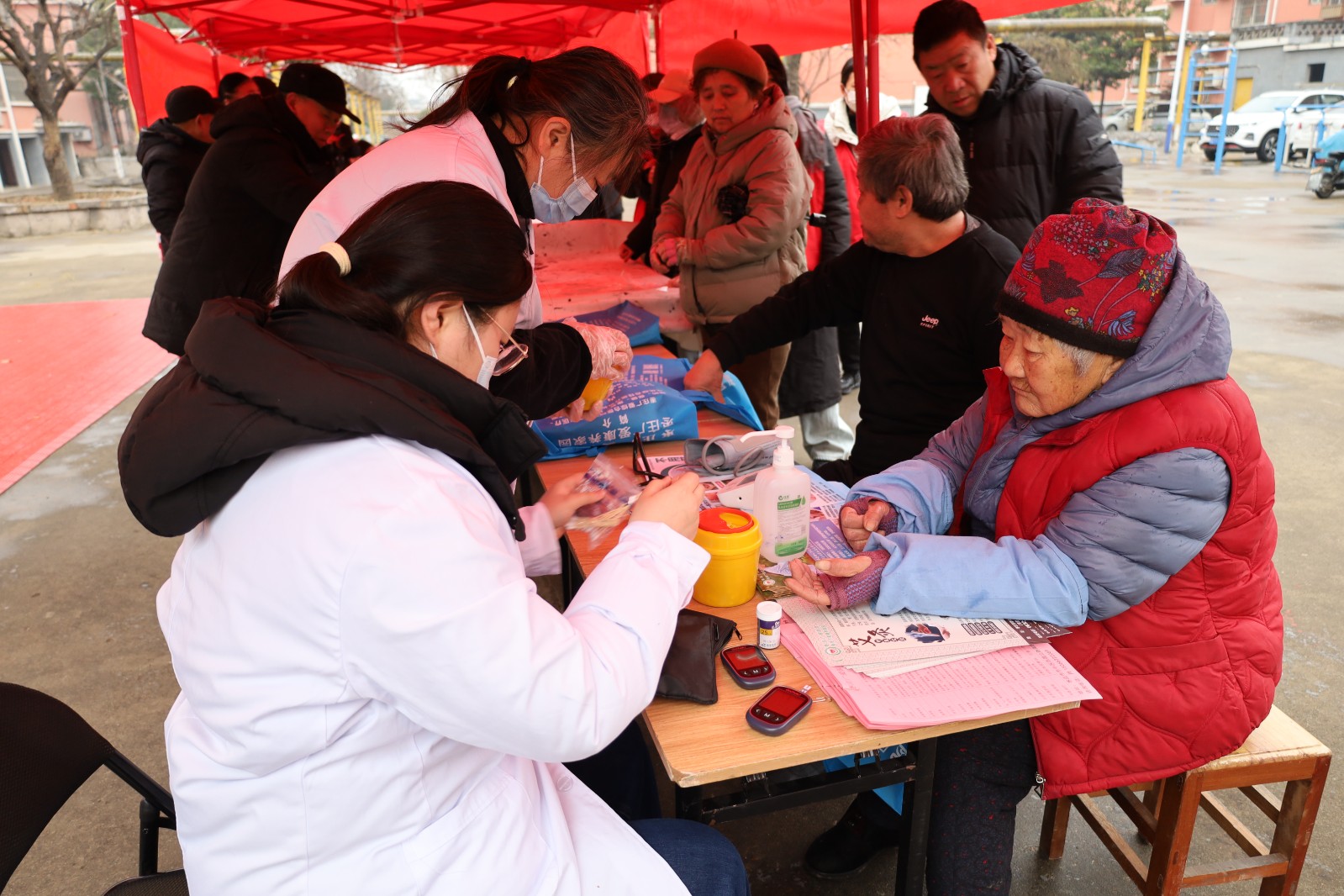 由枣庄广爱医院组建的专业义诊团队,现场设立服务点位,医护人员耐心细致地为居民提供血压测量、健康咨询等服务,针对老年人常见疾病、冬季养生要点等问题,逐一答疑解惑,给出科学的诊疗建议和养生指导。