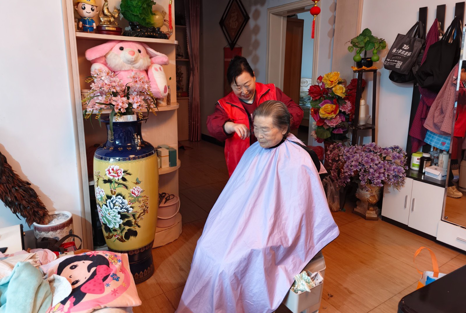 除了写春联、送义诊,现场还设置了套圈、投壶等经典民俗游戏环节,吸引了各年龄段居民积极参与。针对行动不便的老人,社区志愿者还提供上门免费理发服务,切实解决特殊群体实际困难。