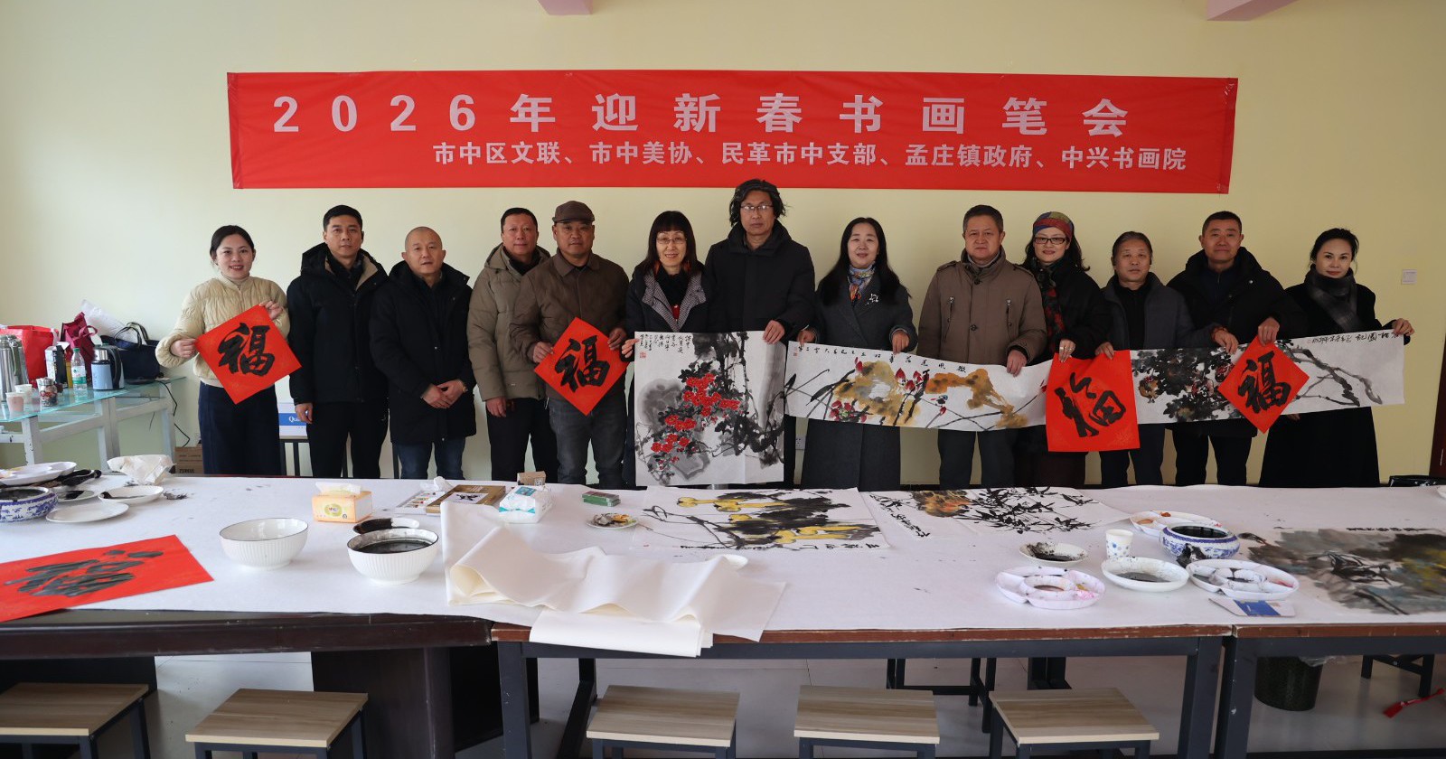 2026年1月26日,正值腊八佳节,由市中区文联、市中美协、民革市中支部、孟庄镇政府、中兴书画院联合主办的迎新春书画笔会在孟庄镇美术馆温情启幕,为即将到来的马年新春增添了浓厚的文化气息。