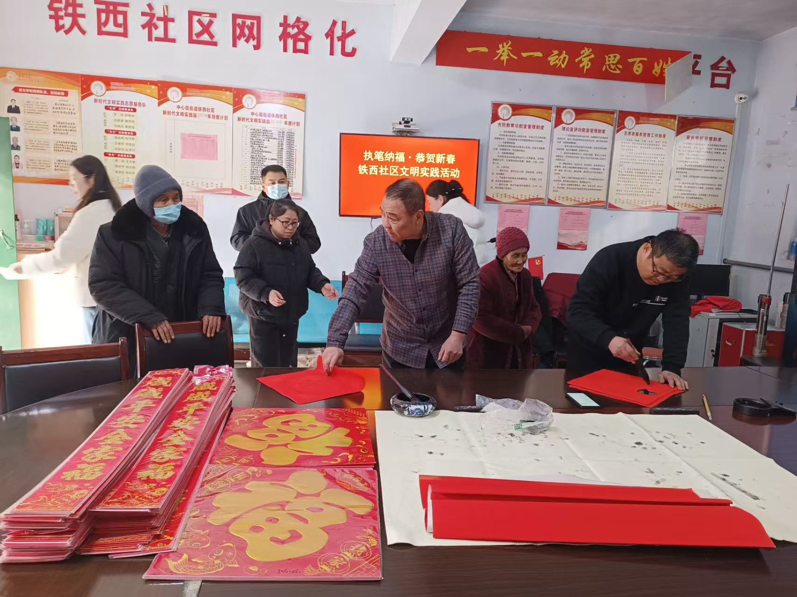 岁末寒冬暖,福至年味浓。新春佳节将至,为传承中华优秀传统文化,营造欢乐祥和、温馨有爱的节日氛围。近日,中心街街道铁西社区联合帮包单位,组织开展“恭贺新春 写福送福”主题活动,以笔墨为媒,将最真挚的新春祝福送到居民心坎上。