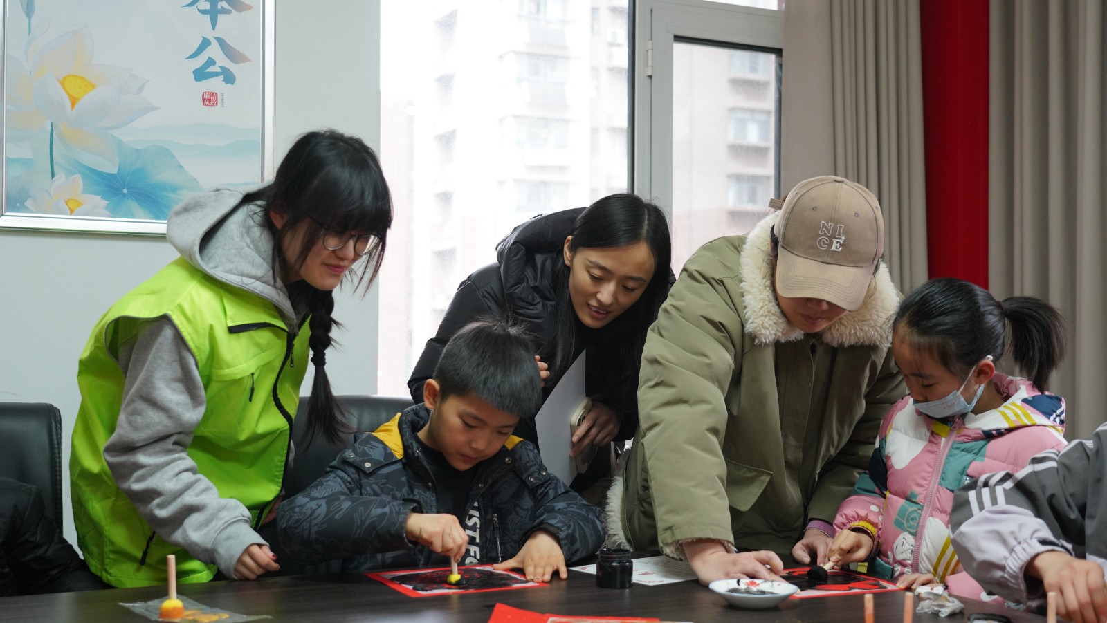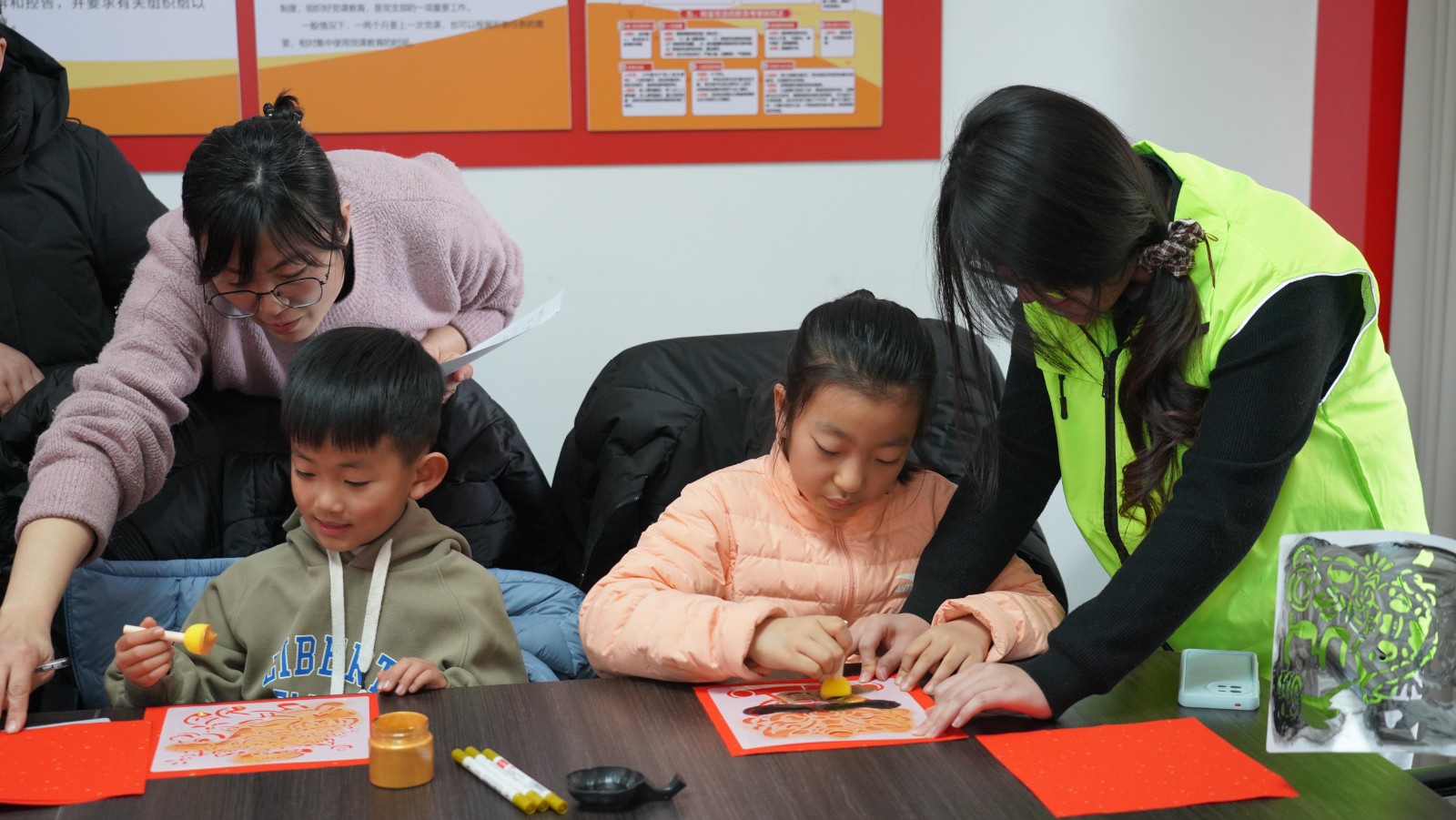 活动现场,大学生志愿者们在非遗拓印区耐心帮助小朋友掌握拓印技巧,从铺纸、上墨到轻压成型,帮助孩子们拓印出寓意吉祥的春字、福纹;在书法区,志愿者们亲身体验书法书写,提笔创作春联、福字。同时贴心服务,为书法家们和前来书写的居民递笔研墨,及时帮忙晾晒刚写好的作品,避免墨迹晕染,让居民的新春祝福完美呈现。