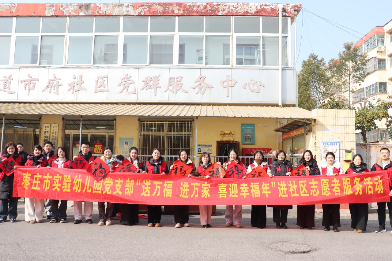近日,文化路街道市府社区联合实验幼儿园、枣庄农商银行振兴支行共同开展“送万福 进万家 喜迎幸福年”活动,为社区居民送上新春祝福,营造欢乐祥和的节日氛围。