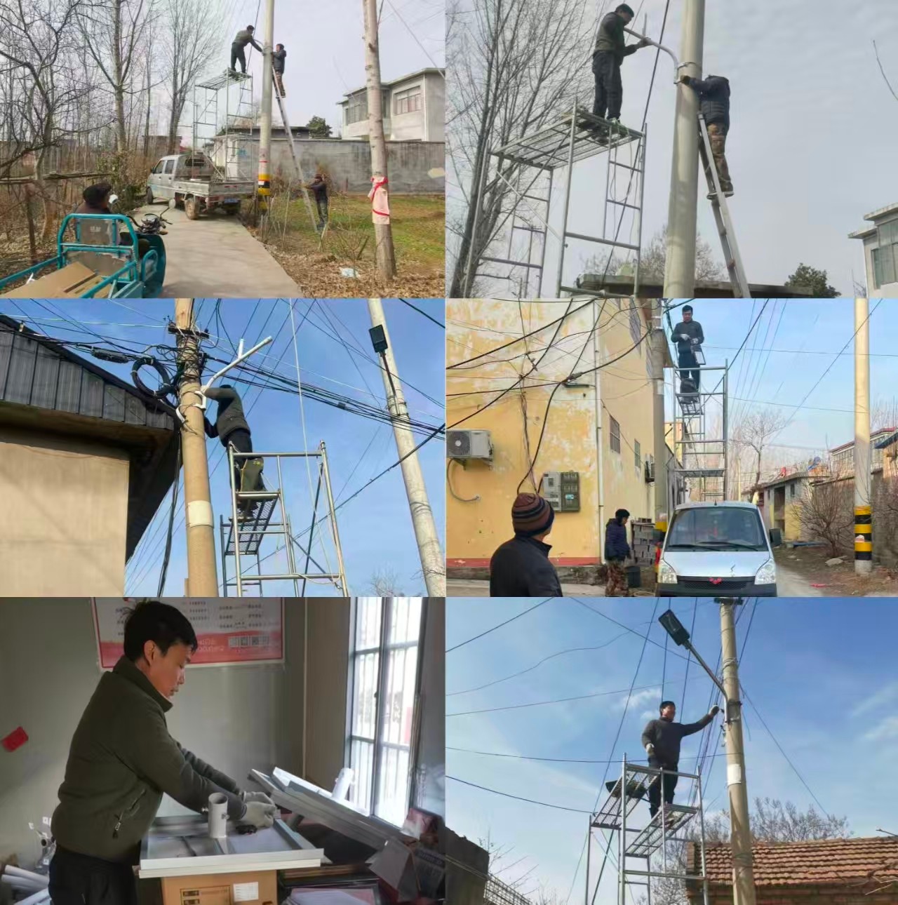 施工过程中,工作人员严格按照操作规程,重点针对老旧、损坏路灯实施改造,及时排除了线头裸露、电线外露、灯门缺失等安全隐患,确保维修后的每一盏路灯都能稳定亮灯。此次工程累计投入15000余元,覆盖村内“两横两纵”4条主干道路,总长约3公里,共更换安装太阳能LED路灯32盏,其中包括多盏原有故障路灯的替换与升级,有效改善了部分路段照明不足的状况。工程结束后,村委会组织人员对施工现场进行清理,恢复道路整洁,营造了安全、有序的出行环境。