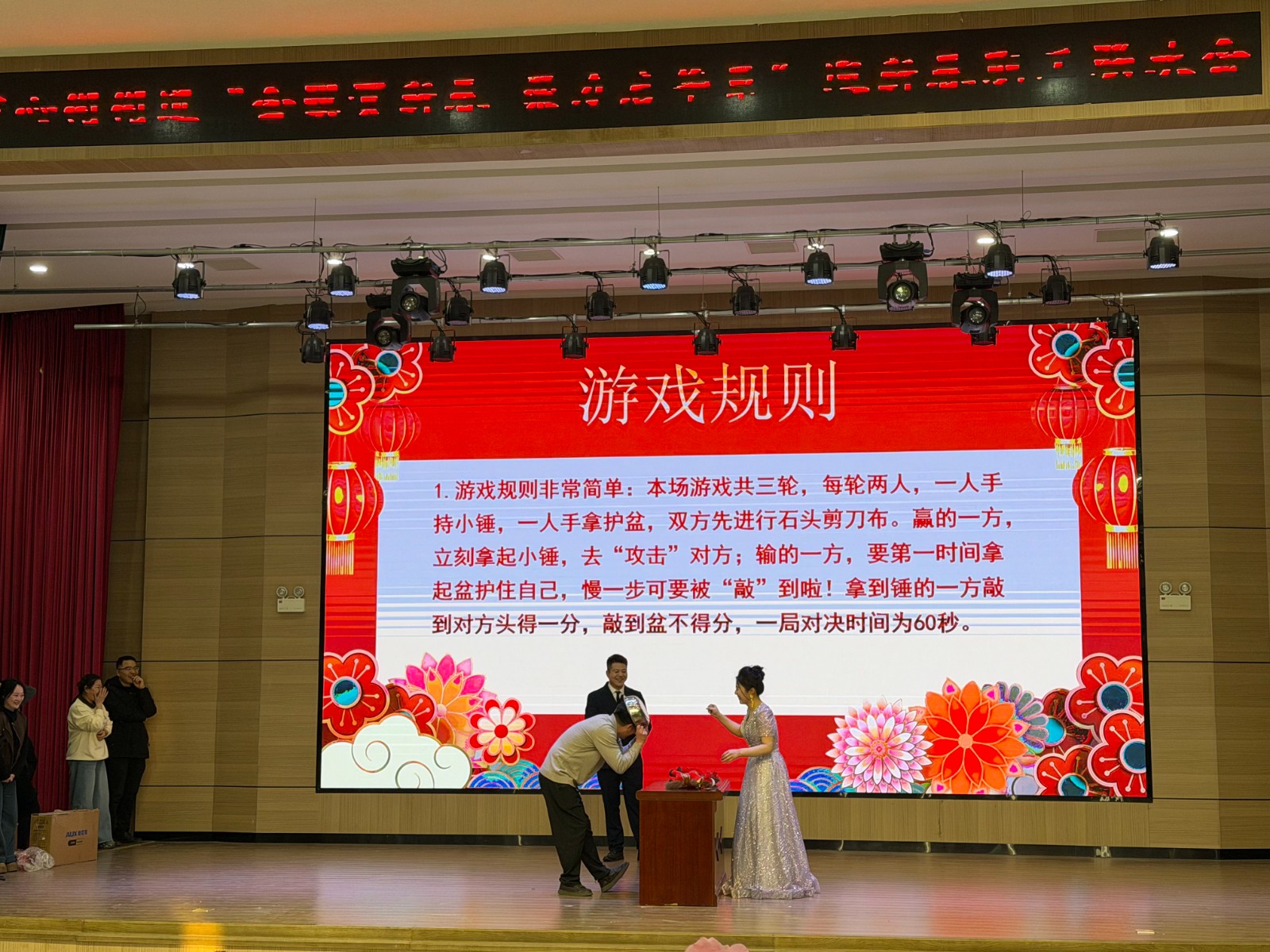 活动现场氛围热烈浓厚,节目形式丰富多样。舞蹈《张灯结彩》拉开联欢会序幕,欢快旋律与优美舞姿瞬间点燃全场热情;小品《甄嬛后传》幽默风趣,巧妙融入工作生活场景,引得现场笑声不断;女声独唱《站在草原看北京》歌声悠扬婉转,将对美好生活的向往娓娓道来;大合唱《相亲相爱》则以饱满热情,诠释了街道 “大家庭” 的温暖与凝聚力,让整场活动高潮迭起。活动中还设置了趣味游戏和幸运抽奖环节,大家积极参与、互动频繁,现场掌声与笑声不断,洋溢着浓浓的新春气息。