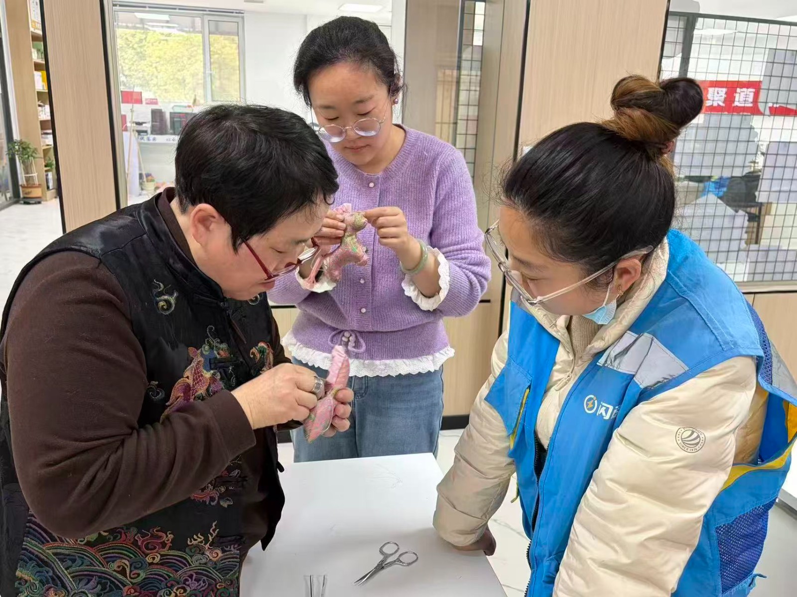 活动过程中,参与者不仅学习传统手工艺的基本技法,还在互动中分享各自的工作经历与生活感悟。一位从业多年的女快递员表示:“平时工作节奏快,很少有机会静下心来做一些手工,这次活动让我感受到社区的关心,也让我意识到自己的工作被看见、被尊重。”