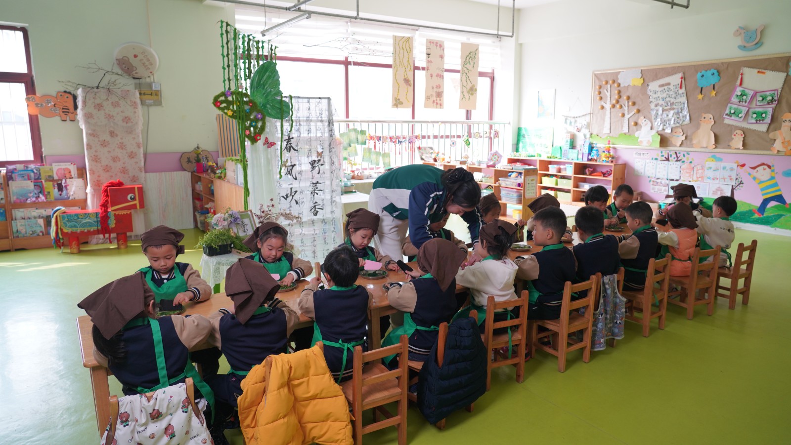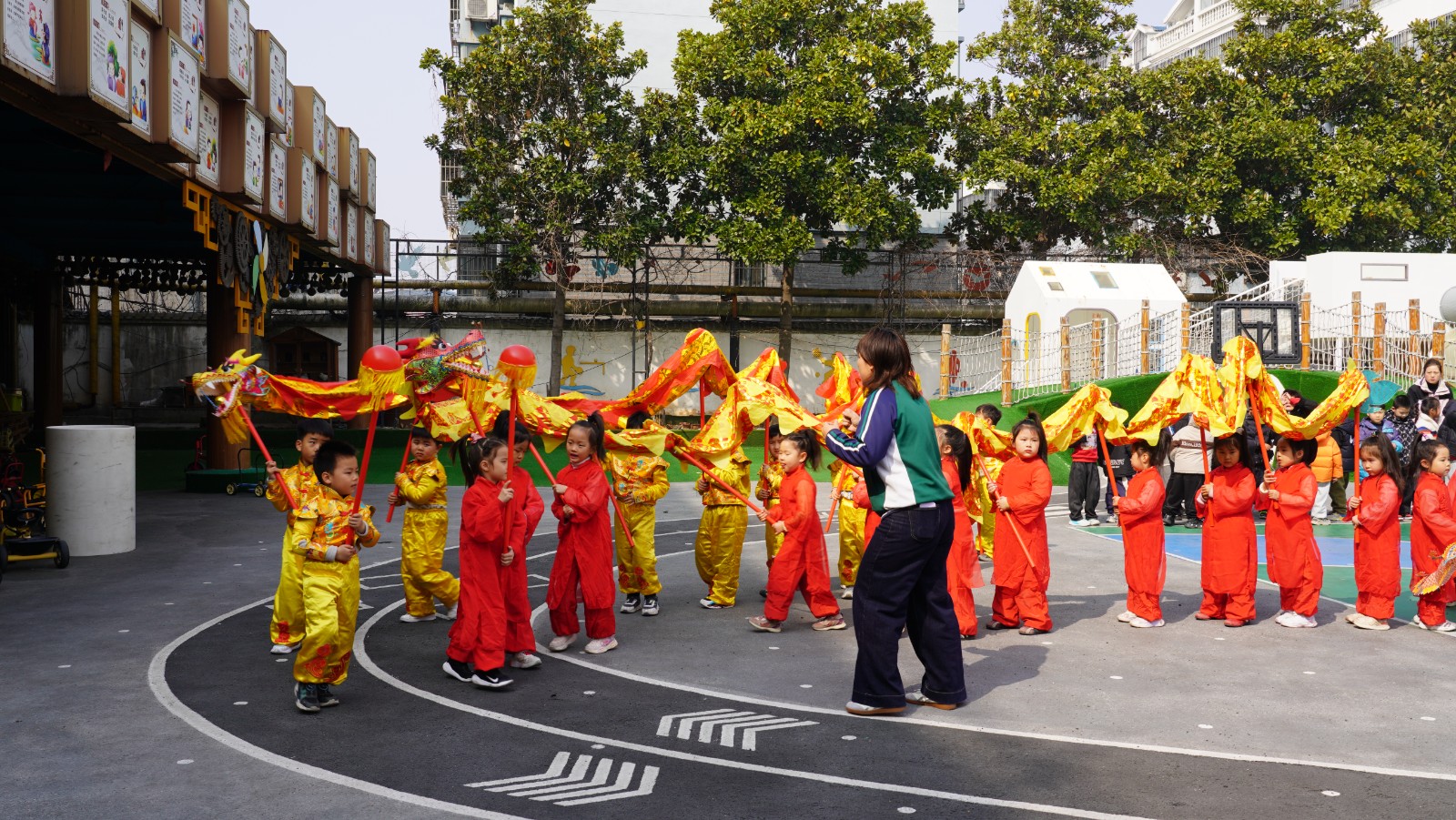 活动现场洋溢着欢乐祥和的节日气氛。在老师们的引导下,孩子们兴致勃勃地参与了“剪龙头”理发体验,寓意健康成长;操场上,小朋友们手持彩龙上下翻飞,活灵活现的舞龙表演赢得阵阵掌声;教室里,“夺龙珠”趣味游戏紧张激烈;生活区内,孩子们品尝春菜,亲手体验“炒糖豆”,在欢声笑语中体会传统习俗的乐趣。