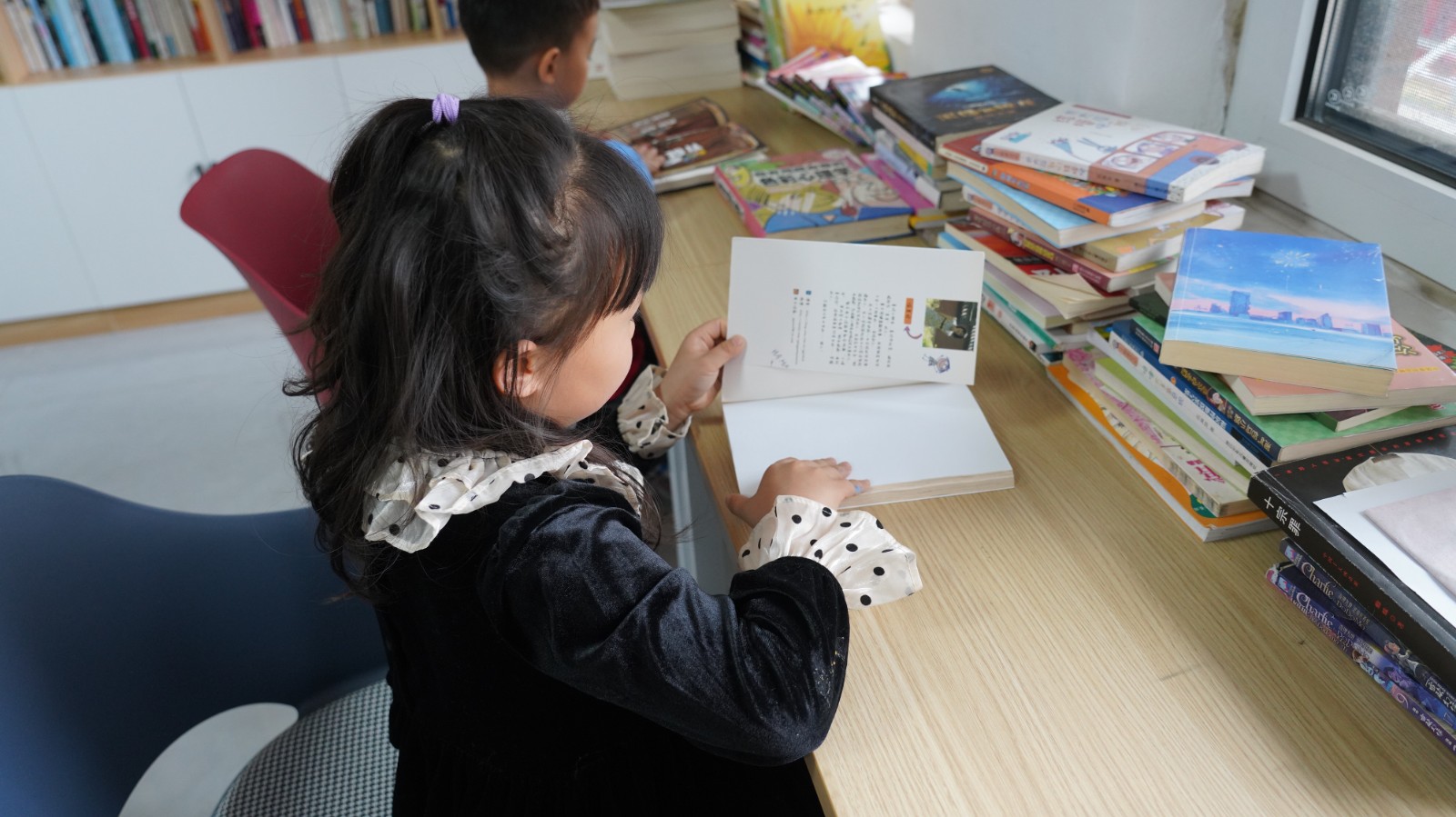活动现场,社区精心布置阅读场地,书架上摆满绘本、童话、科普等适合儿童阅读的优质书籍,色彩鲜艳的绘本封面吸引孩子们纷纷驻足挑选。活动中,孩子们围坐在桌旁,自主挑选心仪书籍,或轻声共读、或独自品读,沉浸在文字与图画构建的奇妙世界里,时而专注翻阅、时而轻声交流,童真与书香交织成温馨画面。