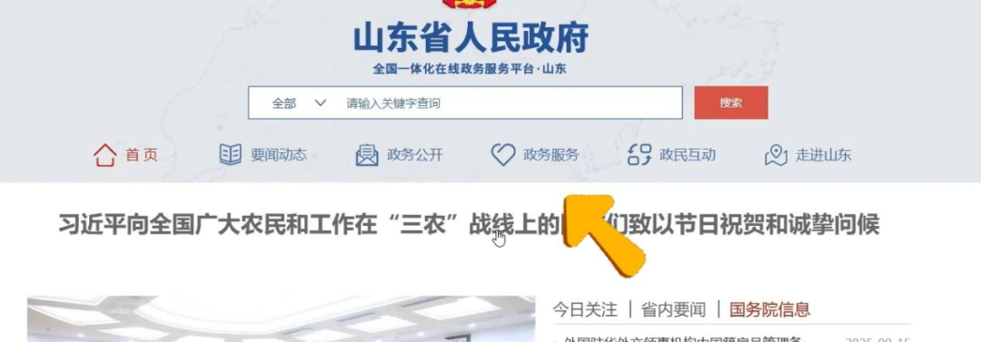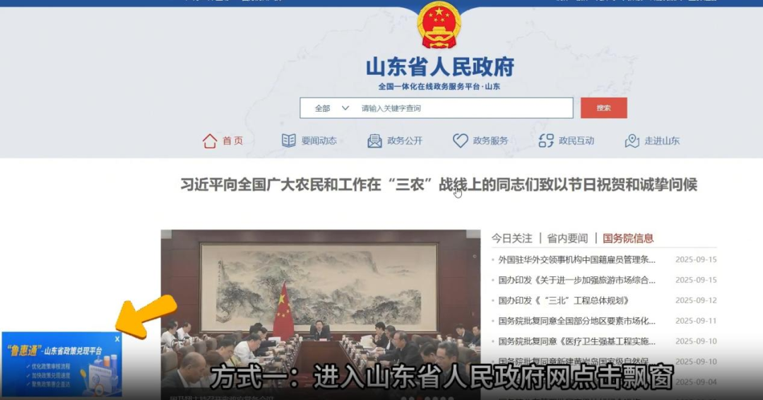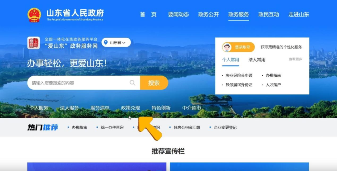 2.在山东省人民政府网“政务服务”中点击“政策兑现”板块