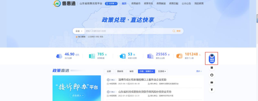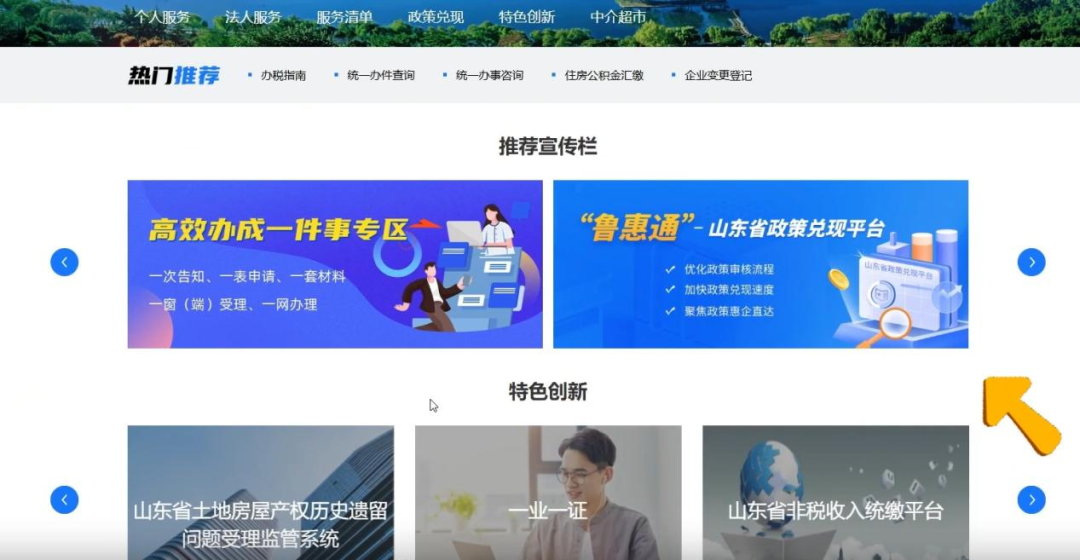 4.在山东省人民政府网特色服务板块点击“政策兑现”跳转
